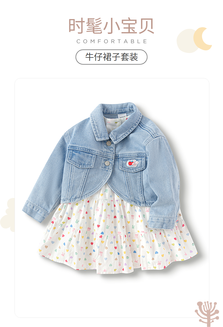 巴拉巴拉童装宝宝女童春装婴儿牛仔两件套裙时尚甜酷满印波点活泼