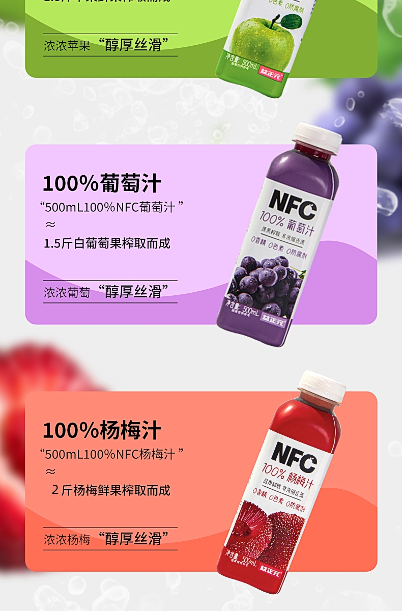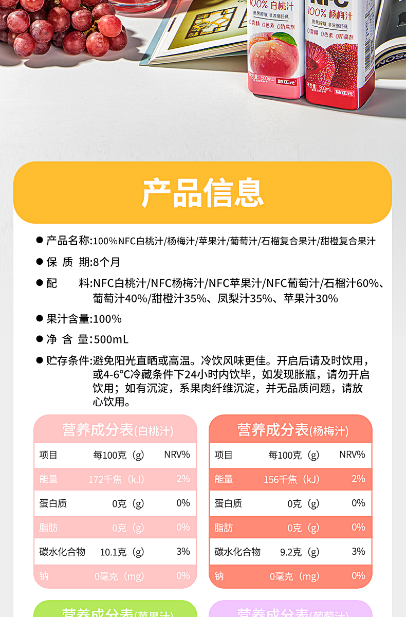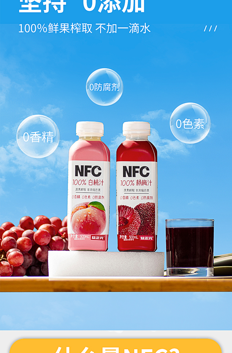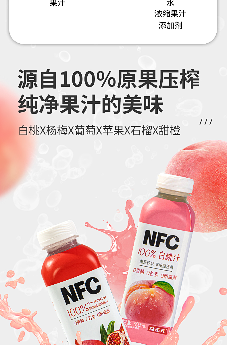 500ml 益正元 NFC100% 白桃汁葡萄汁杨梅汁苹果汁橙复合果汁 饮品饮料 非浓缩还原果汁