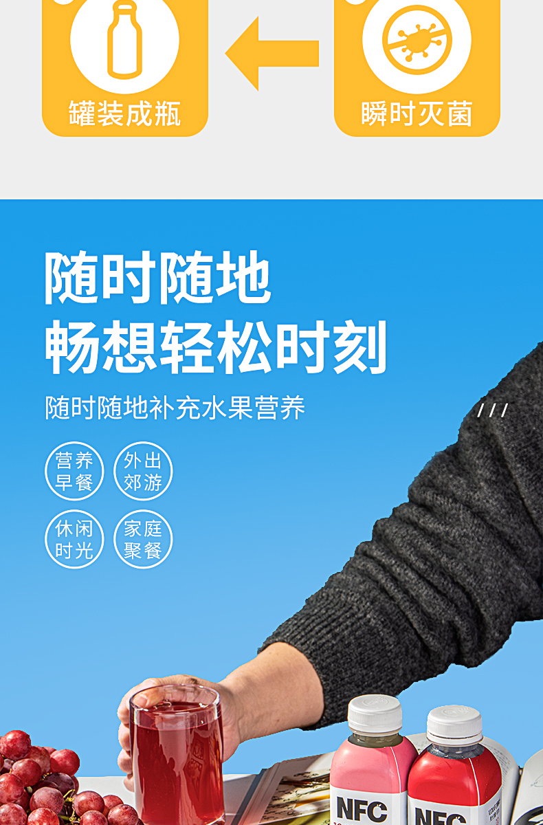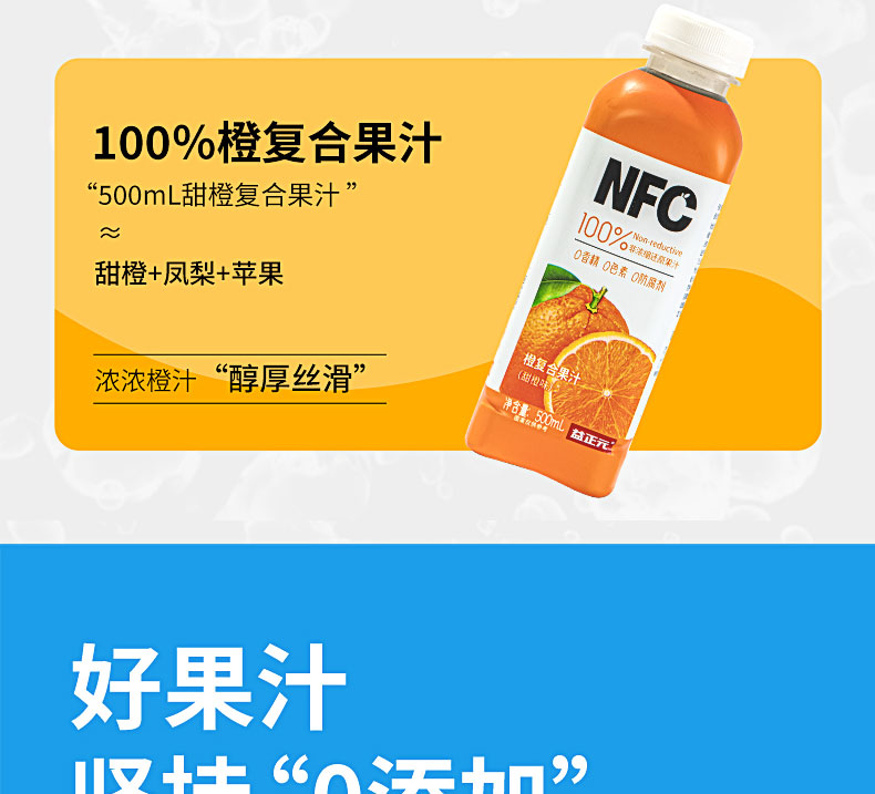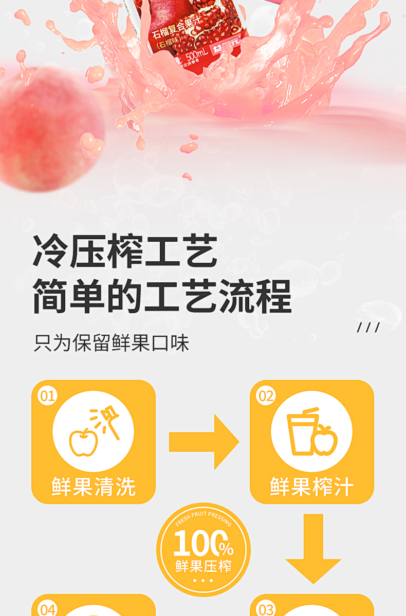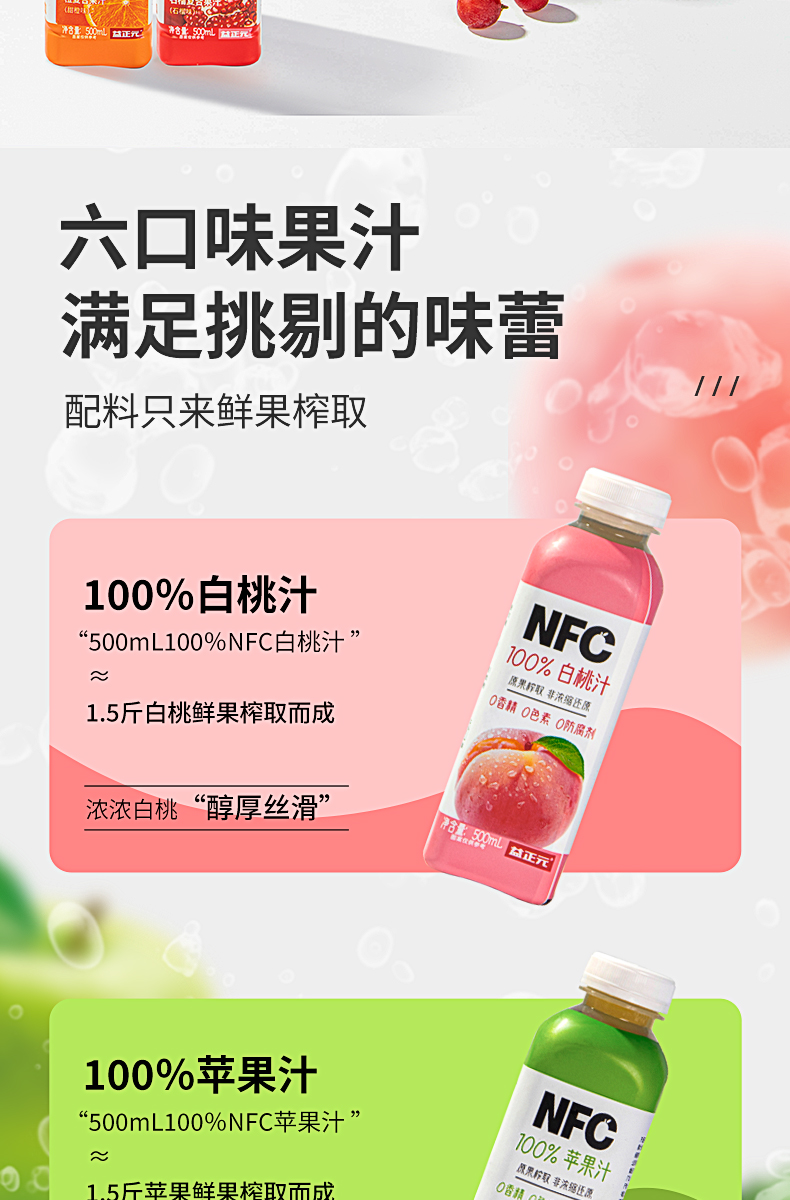 500ml 益正元 NFC100% 白桃汁葡萄汁杨梅汁苹果汁橙复合果汁 饮品饮料 非浓缩还原果汁