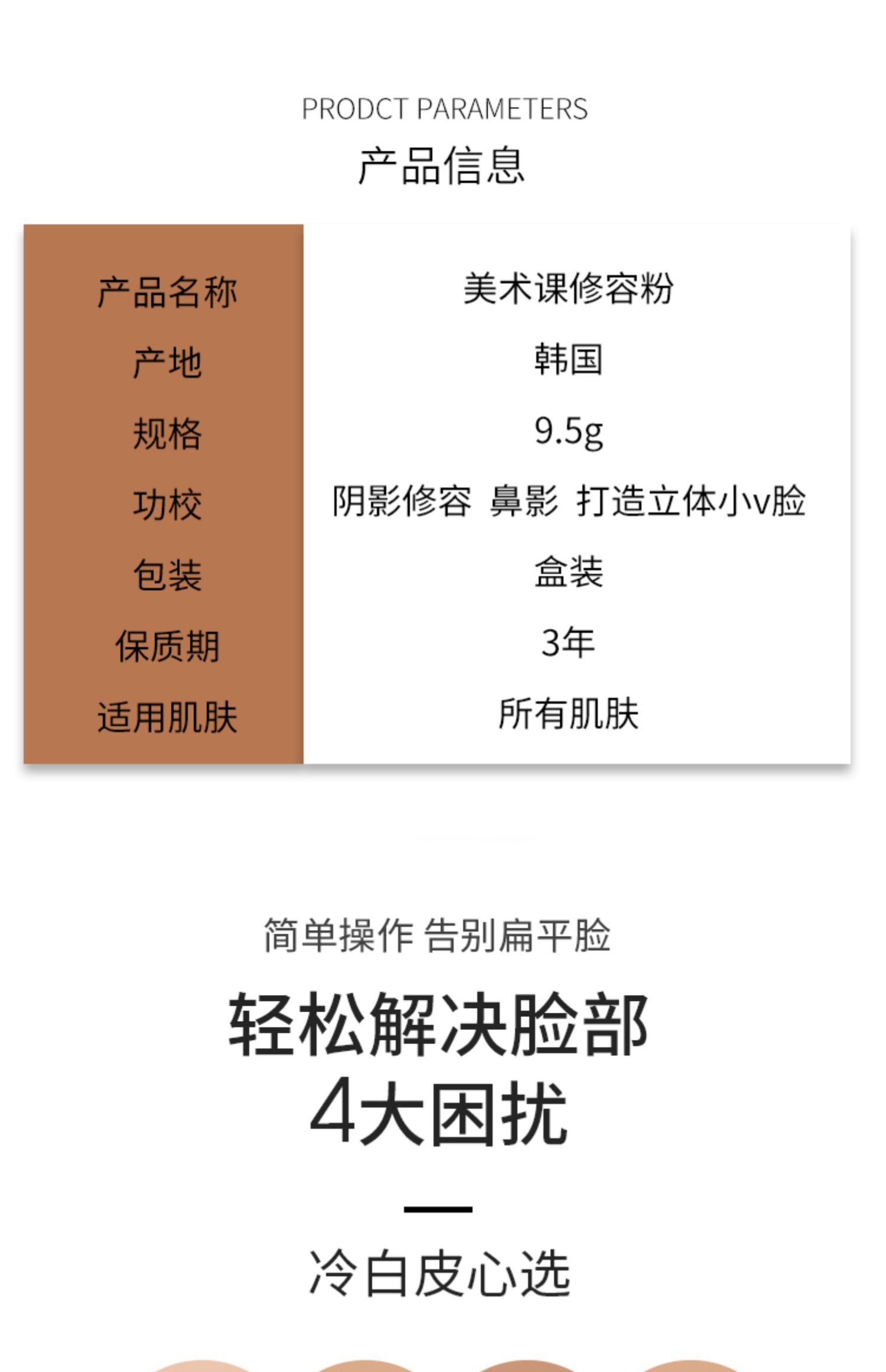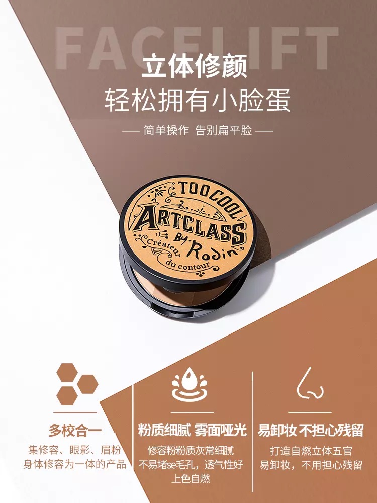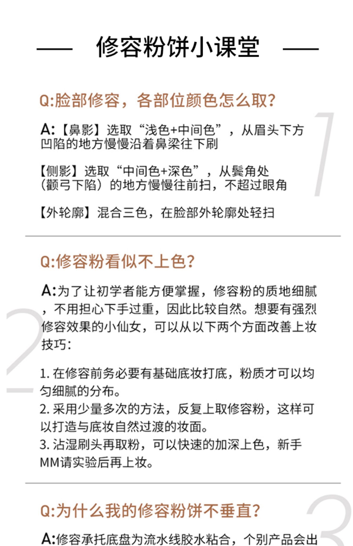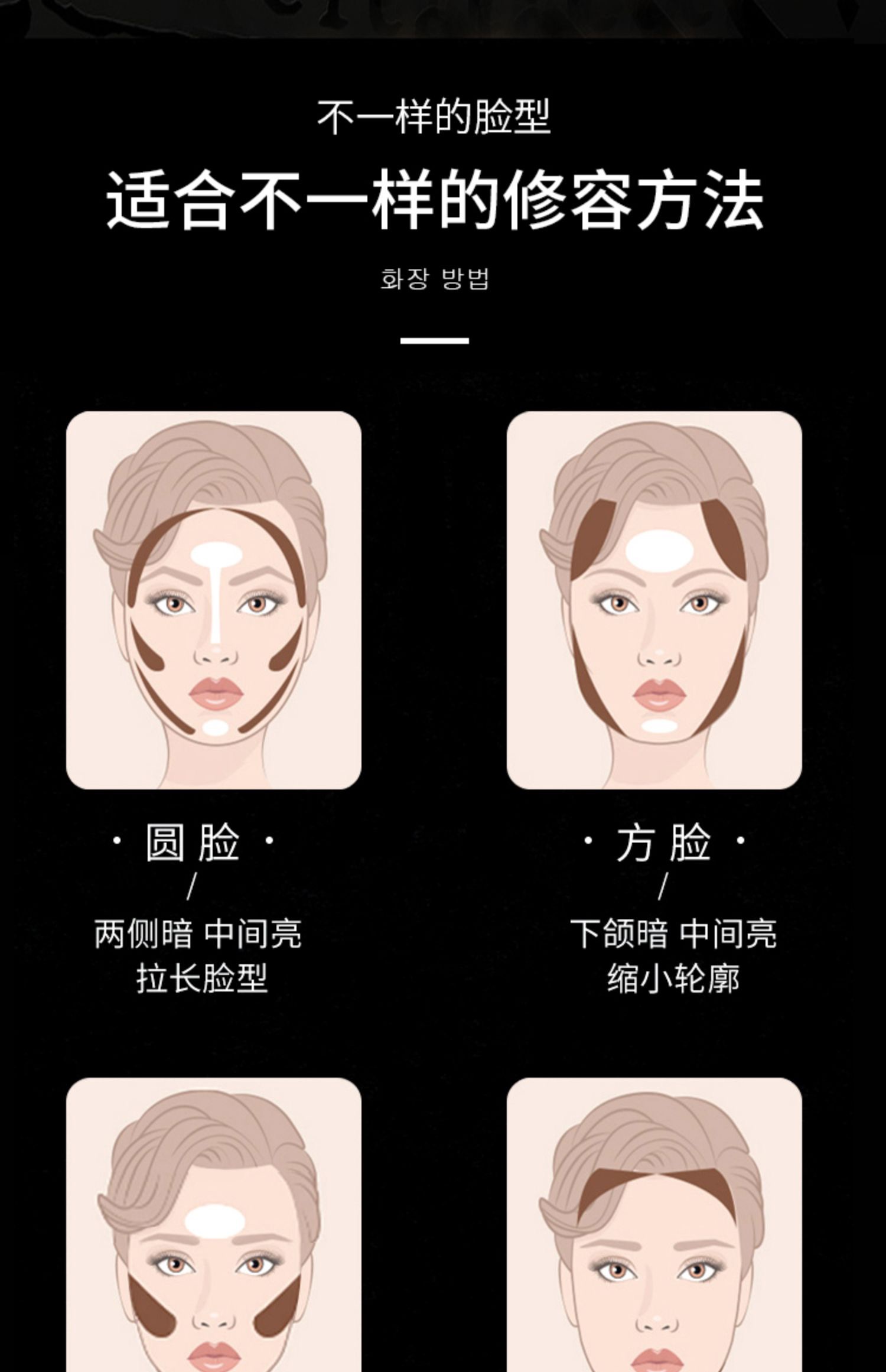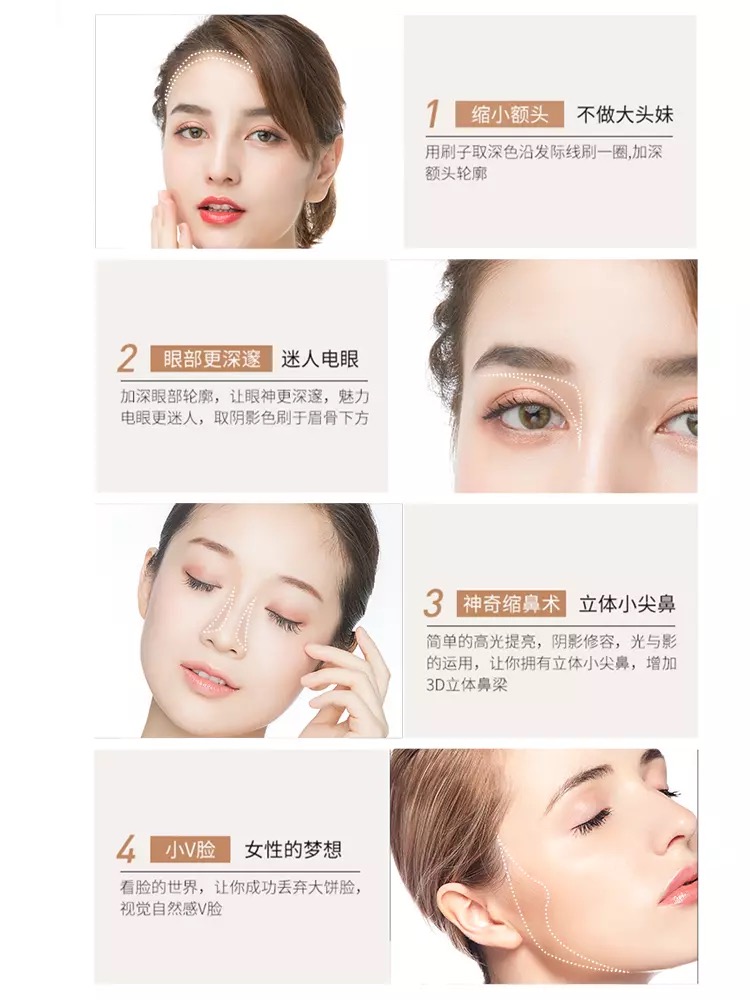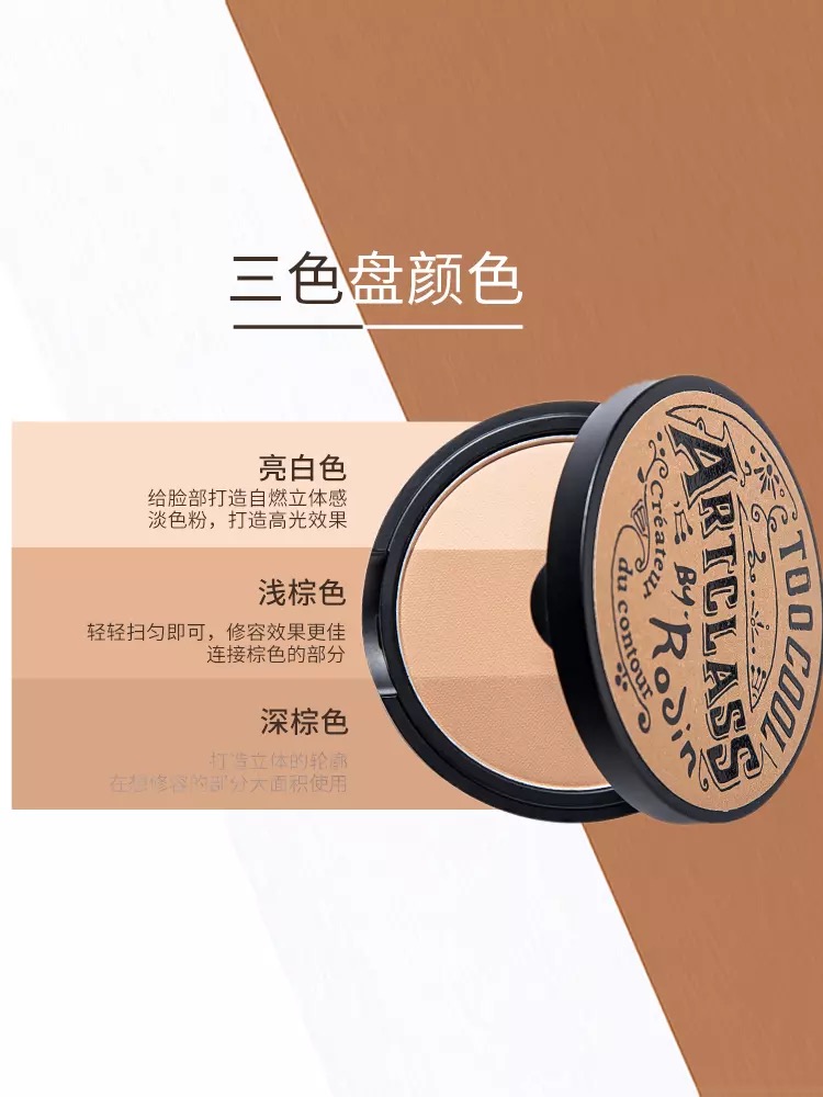 修容界的战斗机,家喻户晓了都不用我介绍了一盒里面有3种不同深度的颜色,可以同时用于侧鼻影,v脸,卧蚕阴影,发际线等。