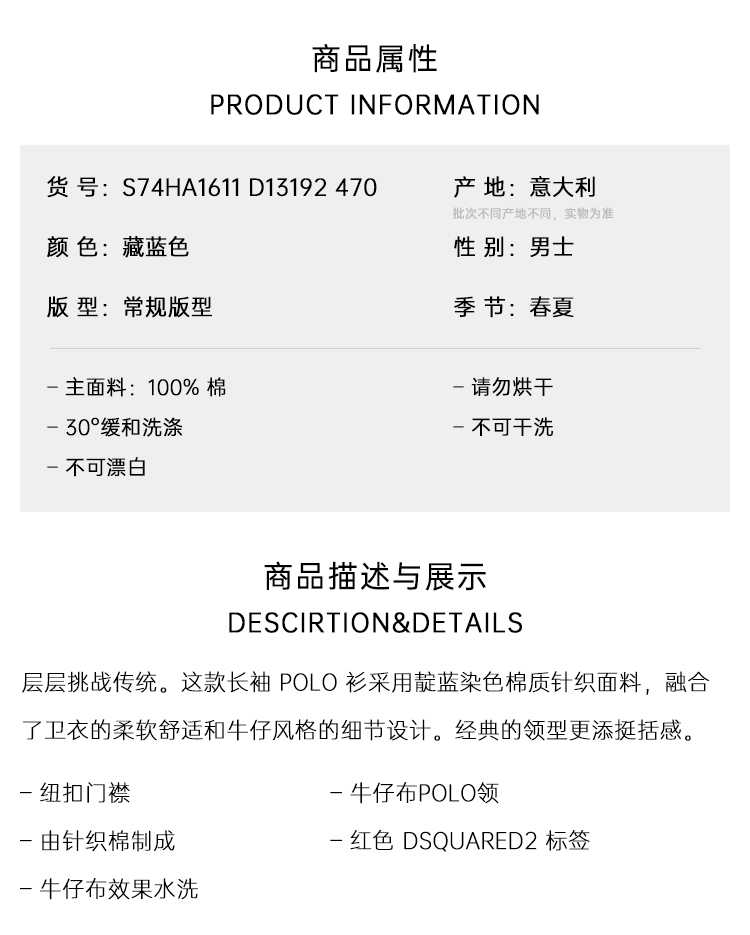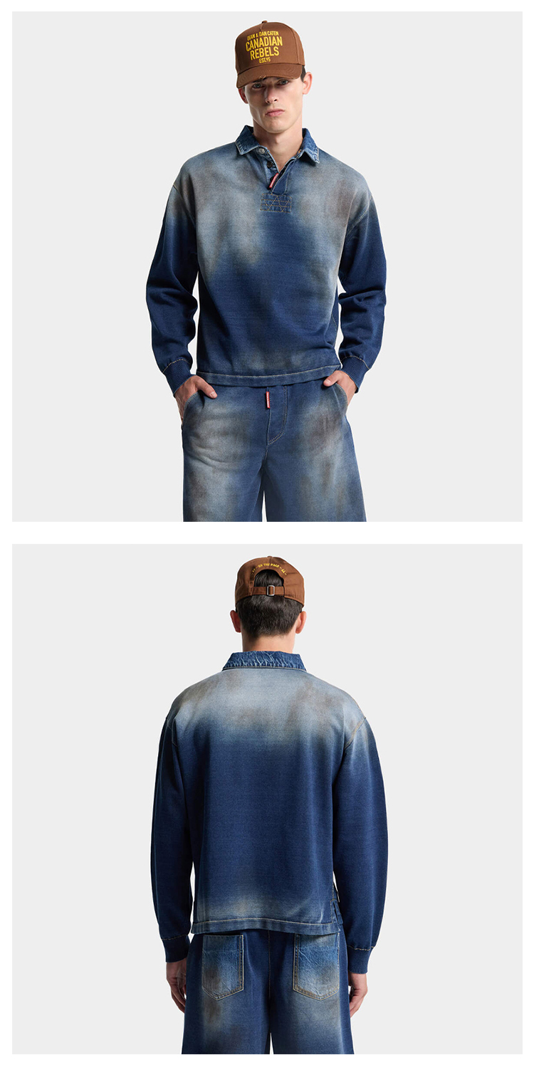 DSQUARED2 男士字母徽标标签牛仔针织长袖卫衣 藏蓝色 S74HA1611 D13192 470