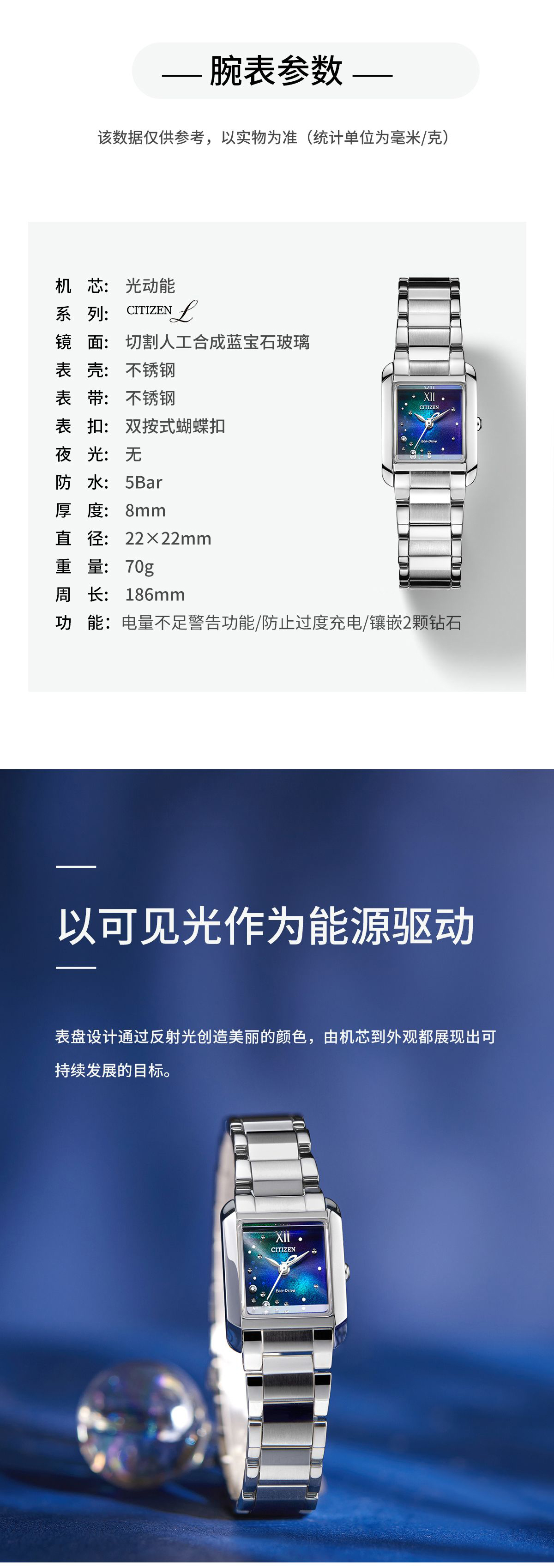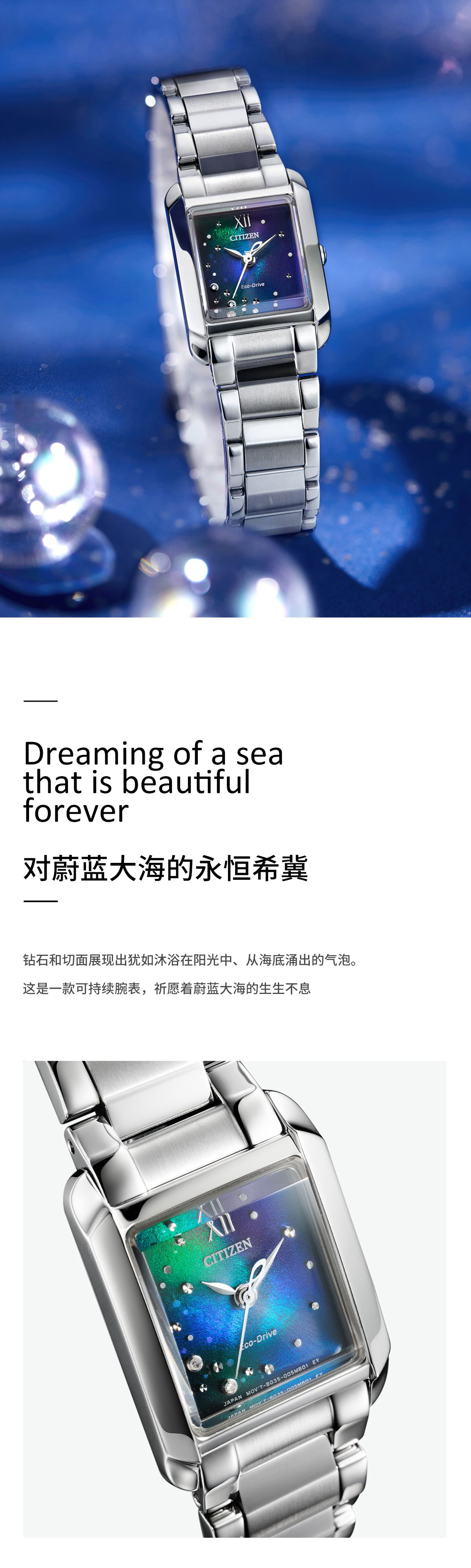 西铁城/CITIZEN光动能蓝色海洋限量时尚女士腕表EW5591-60L