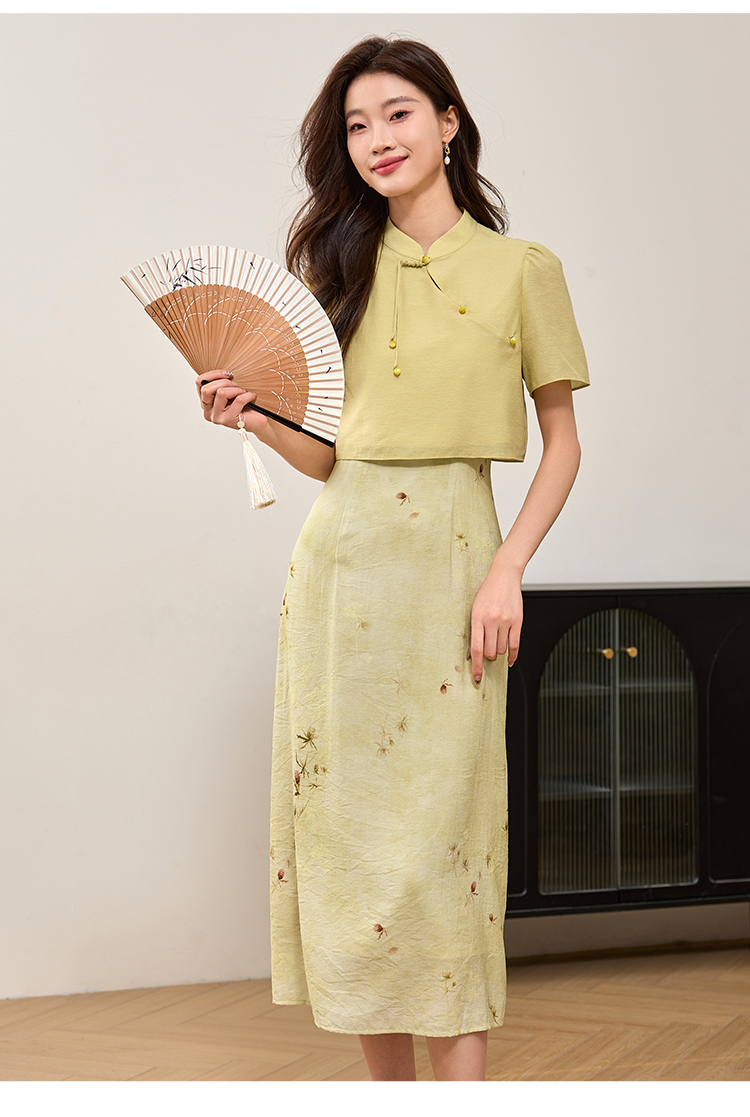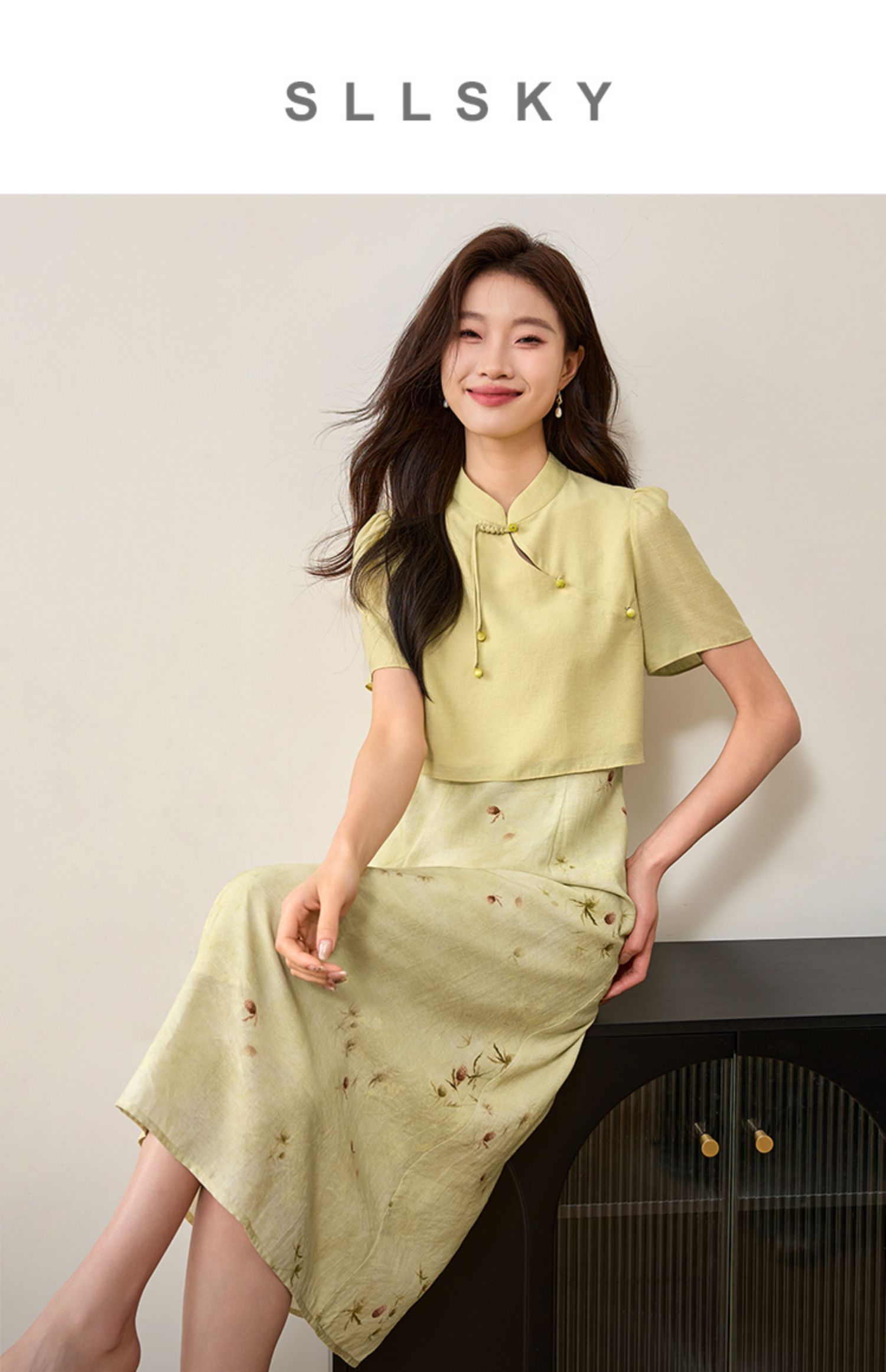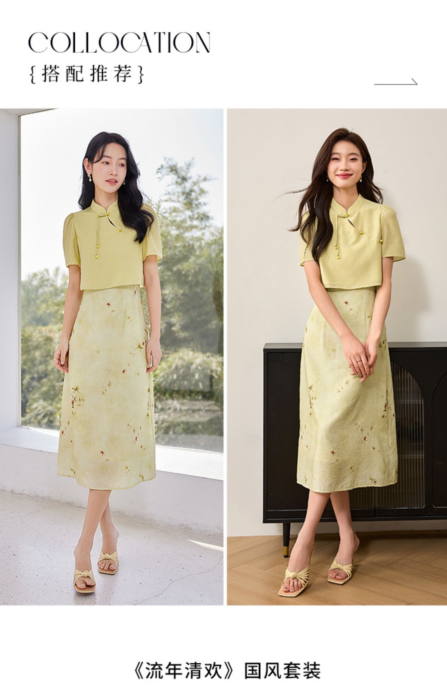 【专属特价】熙世界国风连衣裙套装夏季新中式旗袍上衣吊带裙子两件套裙送考
