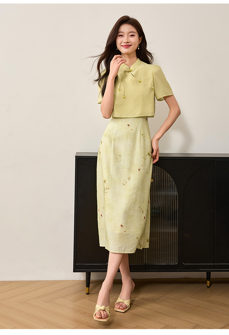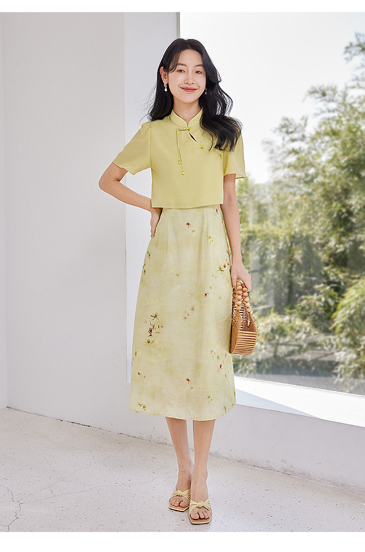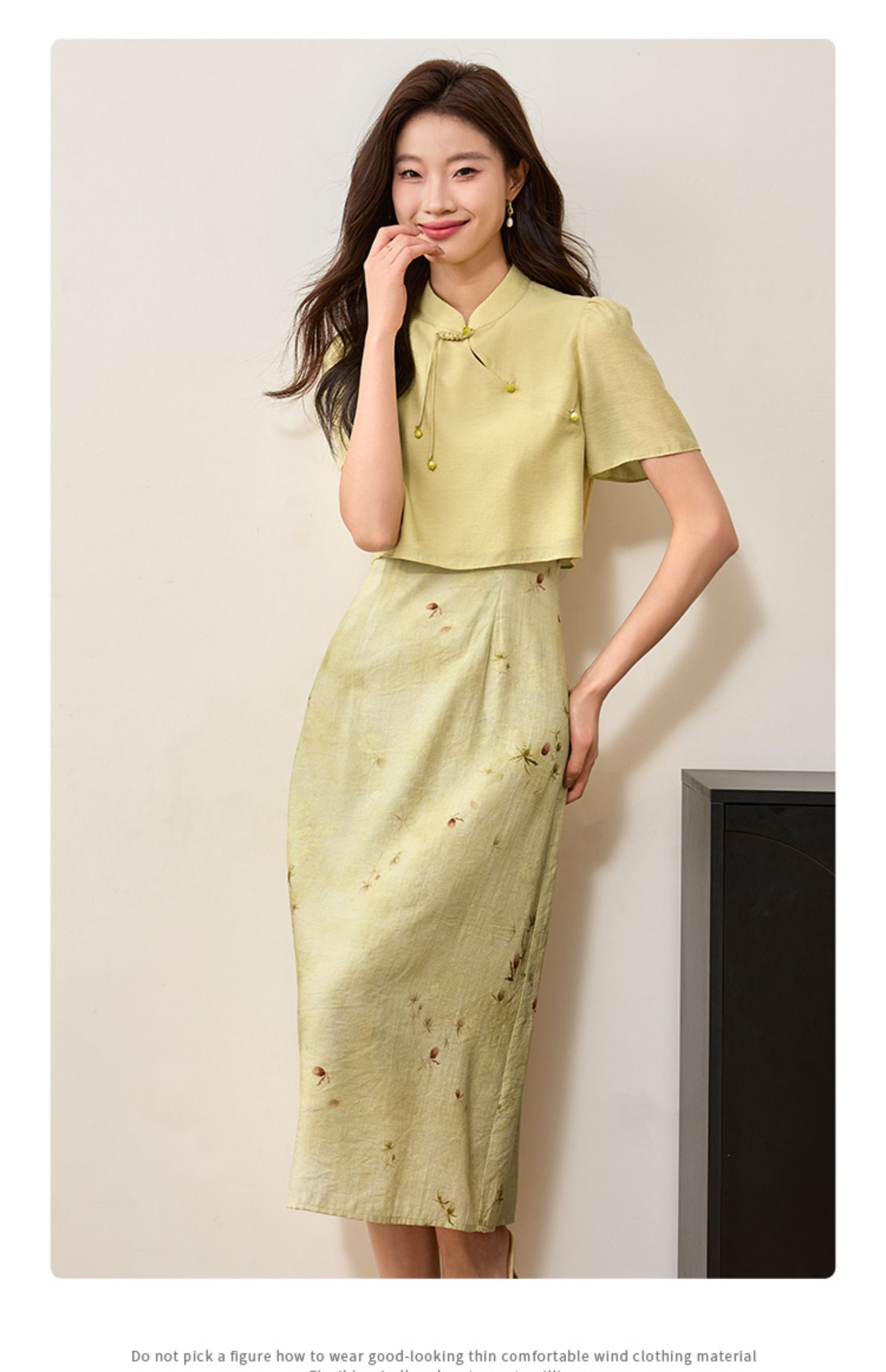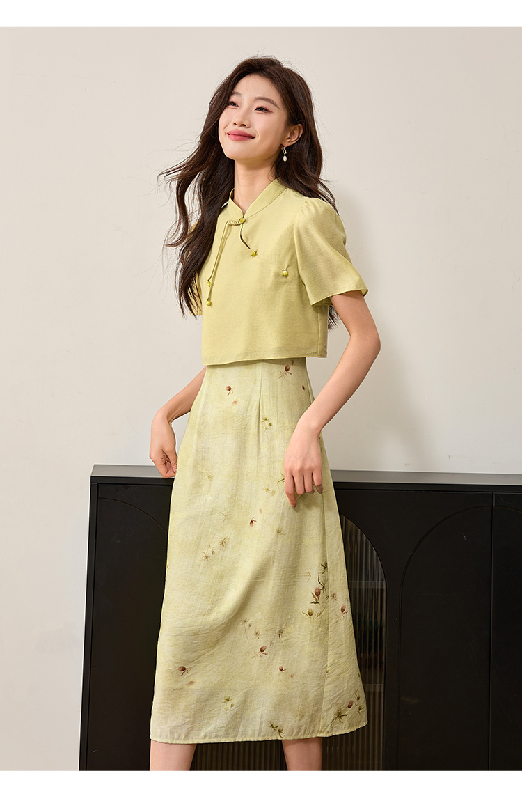 【专属特价】熙世界国风连衣裙套装夏季新中式旗袍上衣吊带裙子两件套裙送考