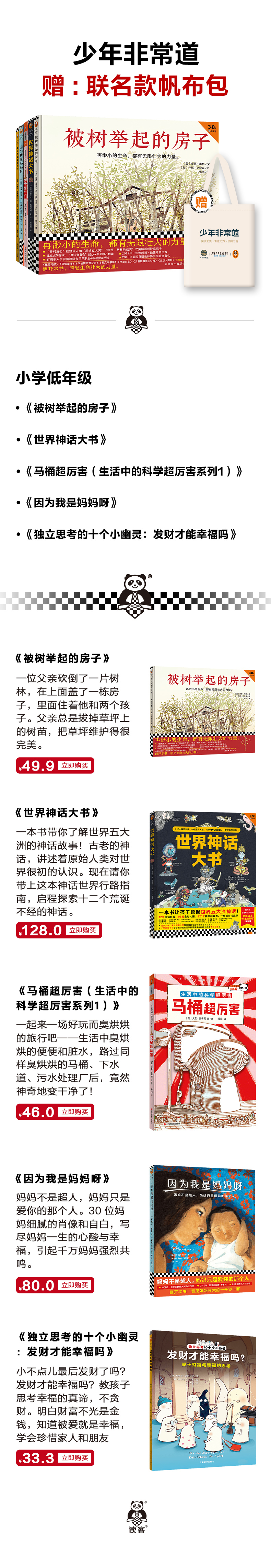 第五届少年非常道小学低年级系列 5套合集 《被树举起的房子》《世界神话大书》《马桶超厉害》《因为我是妈妈呀》《独立思考的十个小幽灵》
