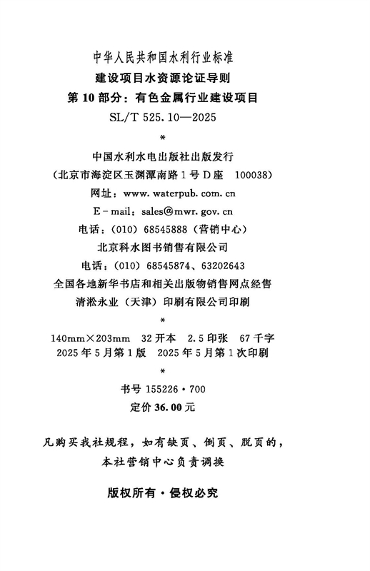 SL/T525.10-2025建设项目水资源论证导则 第10部分: 有色金属行业建设项目(中华人民共和国水利行业标准)