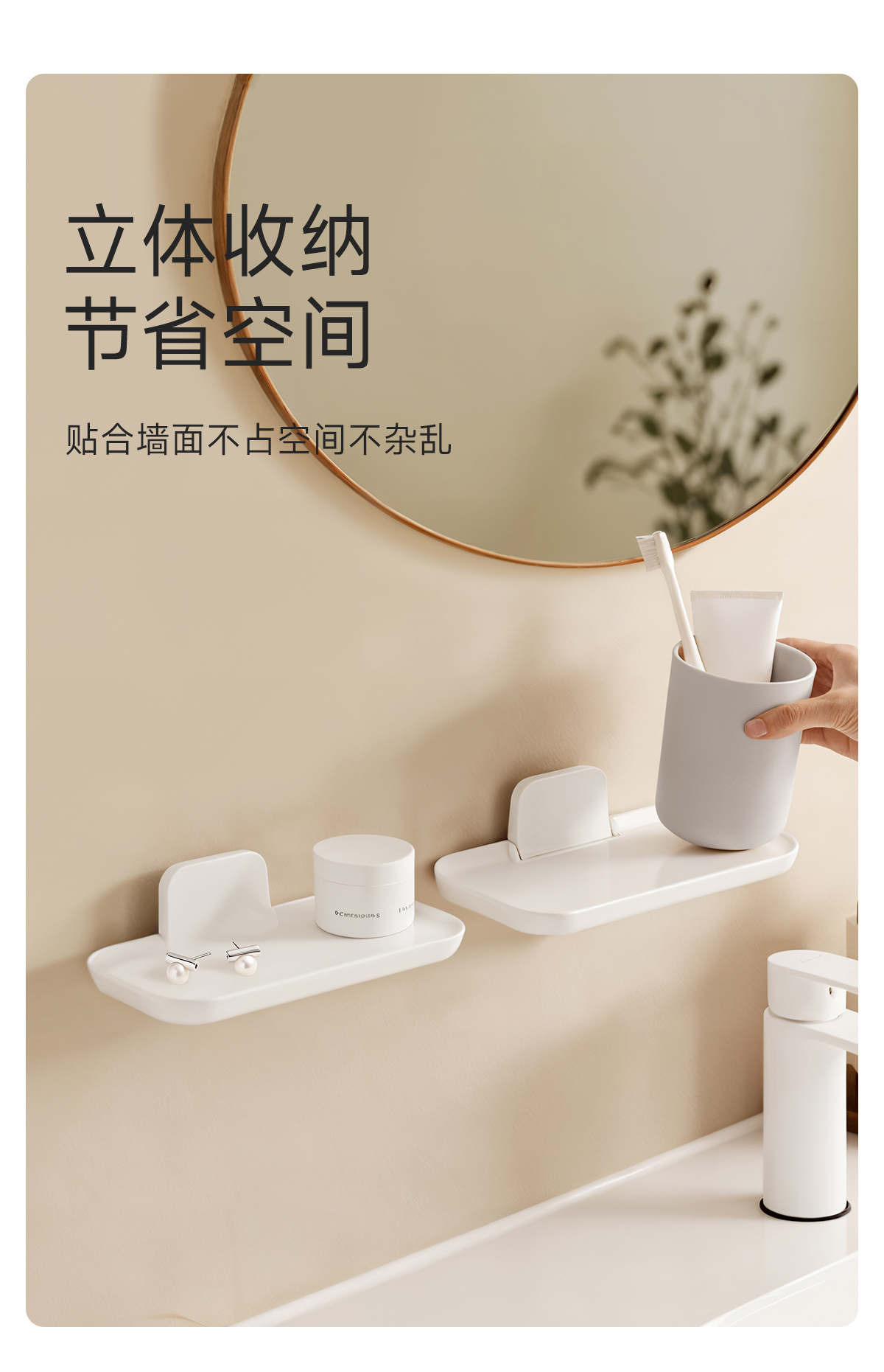 FaSoLa免打孔宿舍折叠收纳架寝室用品置物架卫生间放置衣物收纳盘