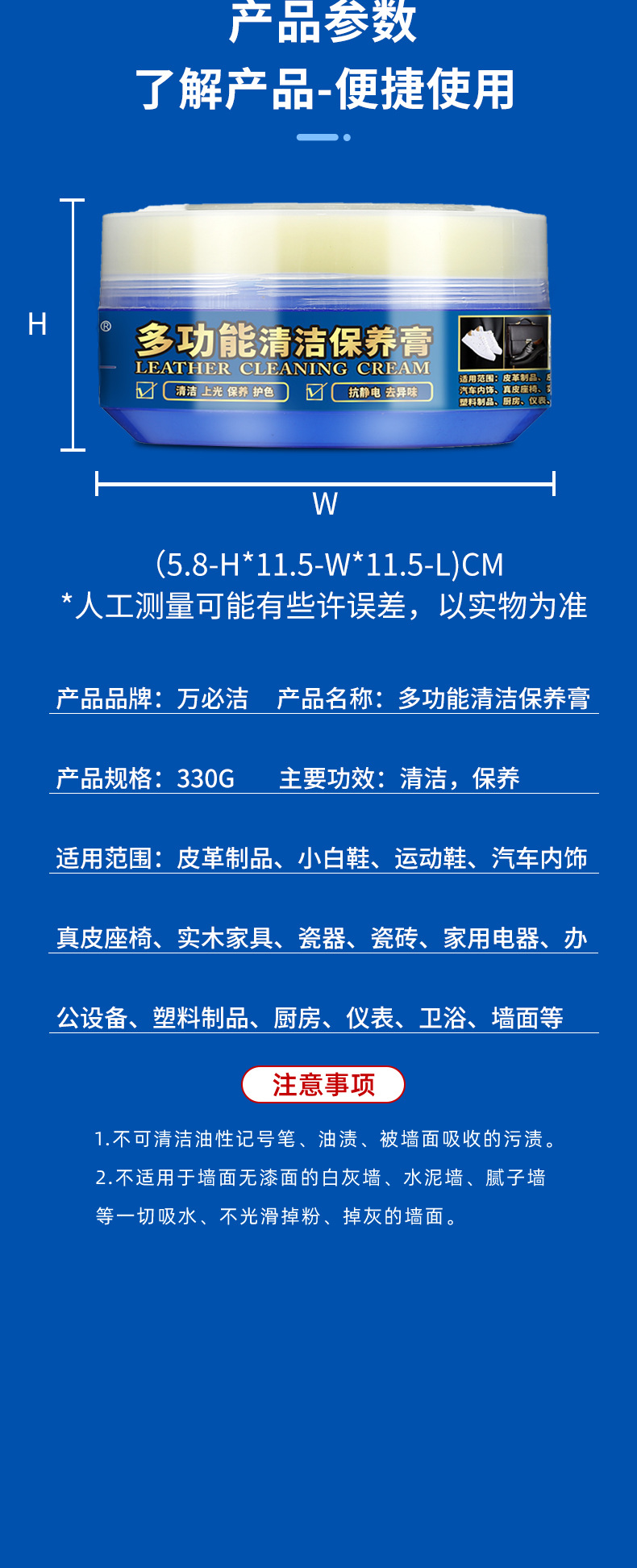 万必洁多功能清洁膏 无水去污膏皮革汽车小白鞋护理保养1.19