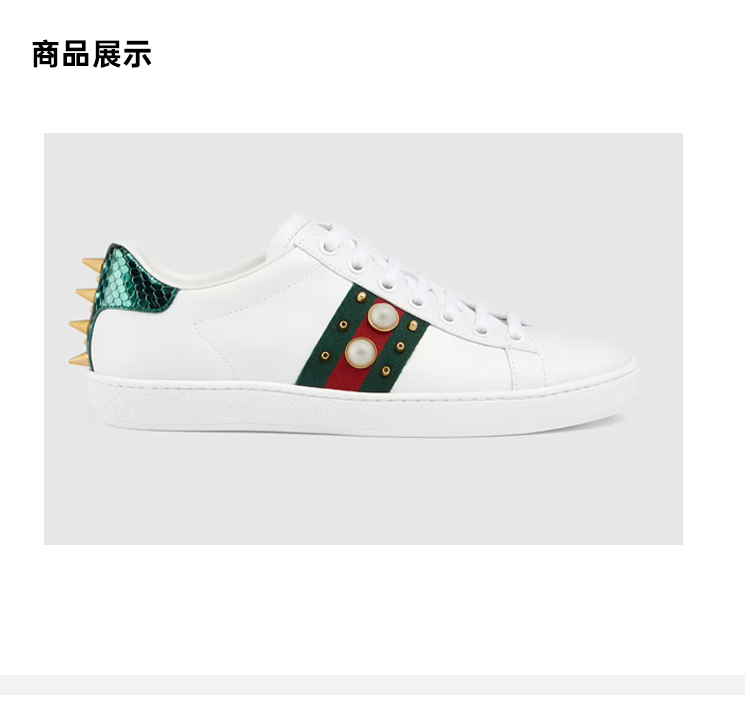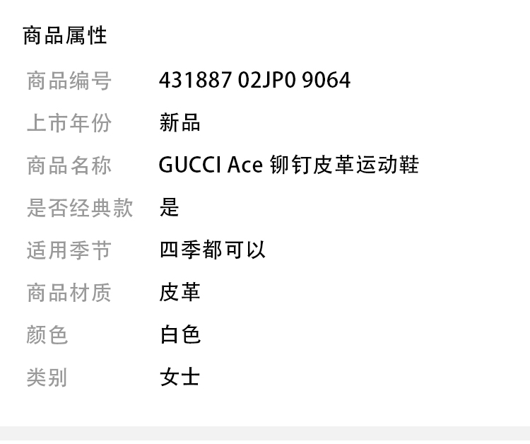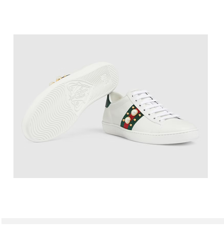 GUCCI 古驰 女士 Ace系列 铆钉皮革休闲运动鞋 白色 431887 02JP0 9064