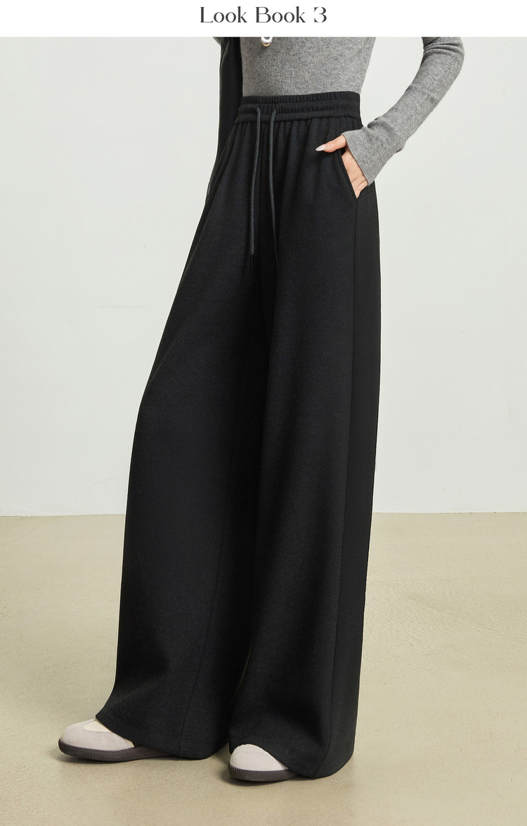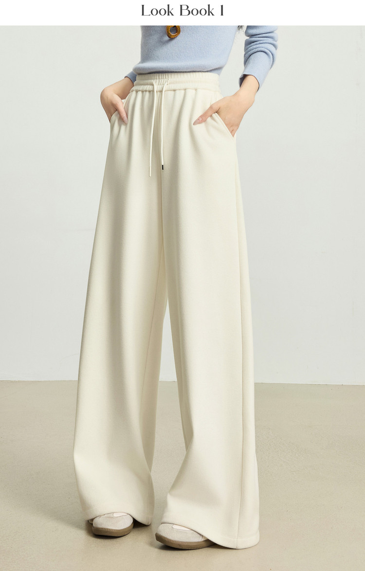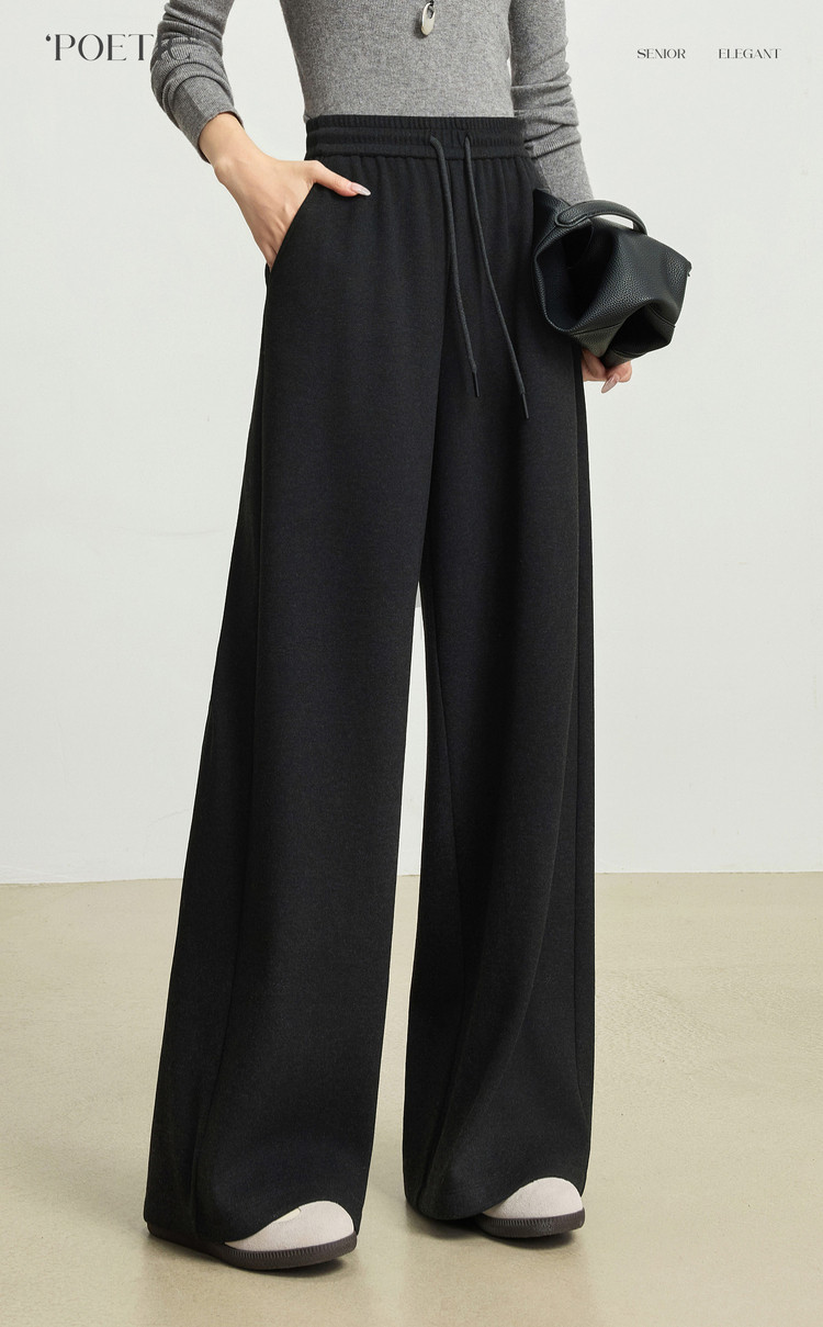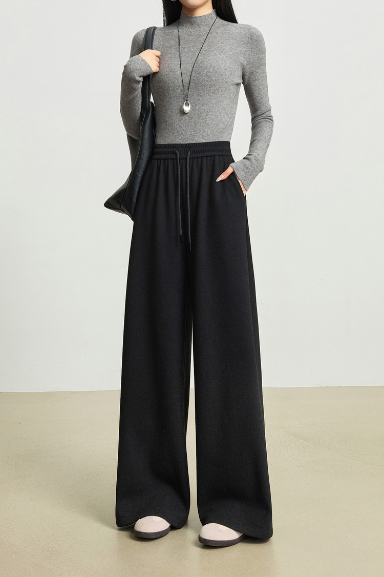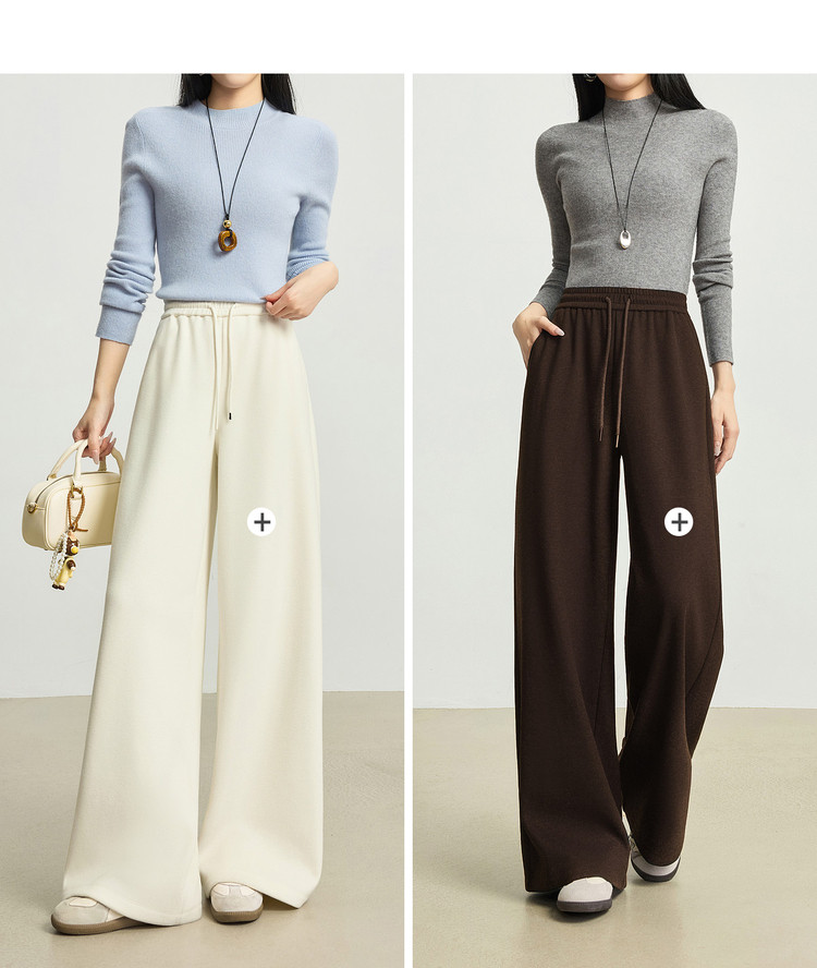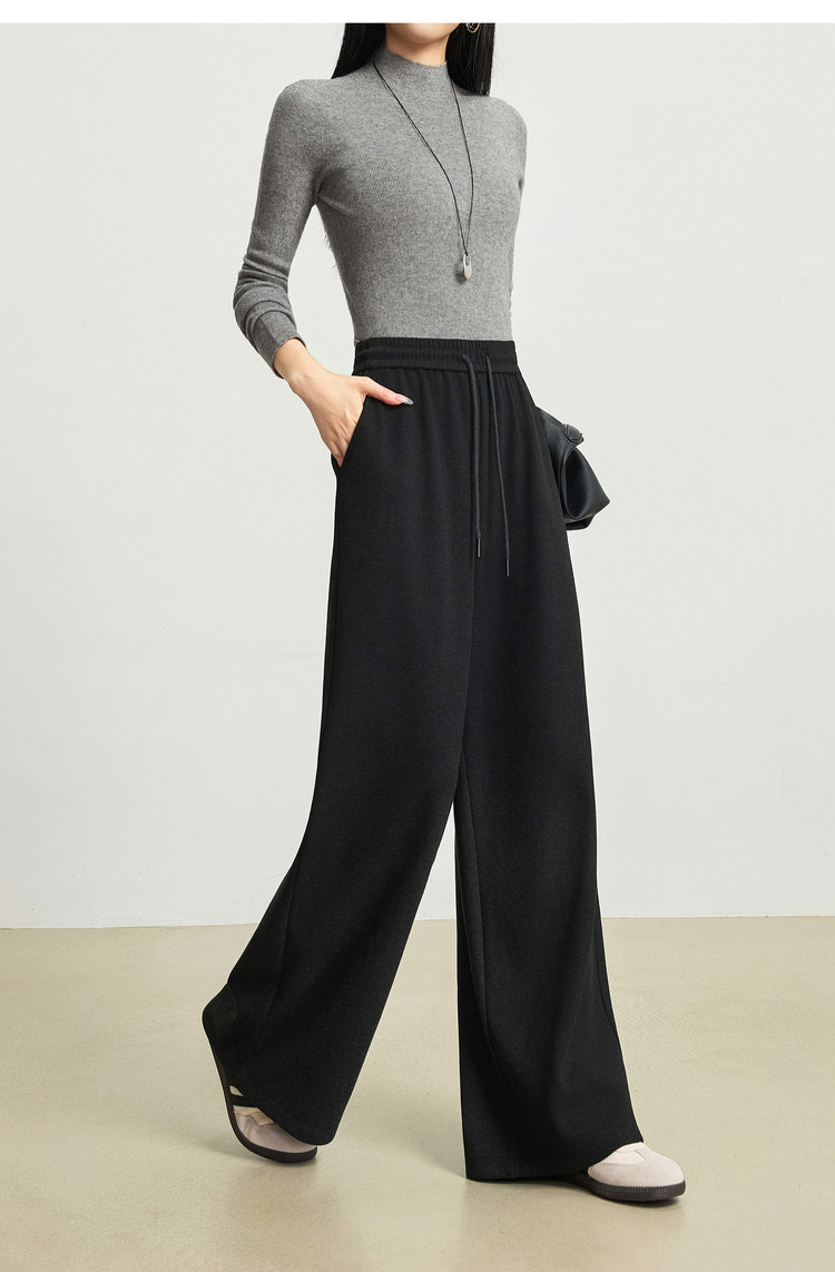 【12/24新品6.5折】熙世界软糯针织阔腿裤女秋冬今年流行梧桐裤高腰休闲直筒加绒裤子