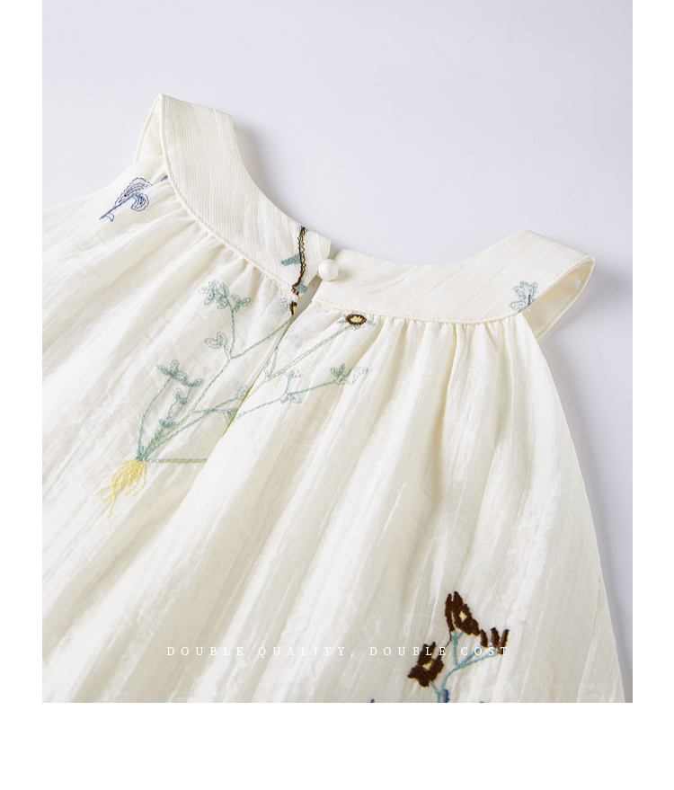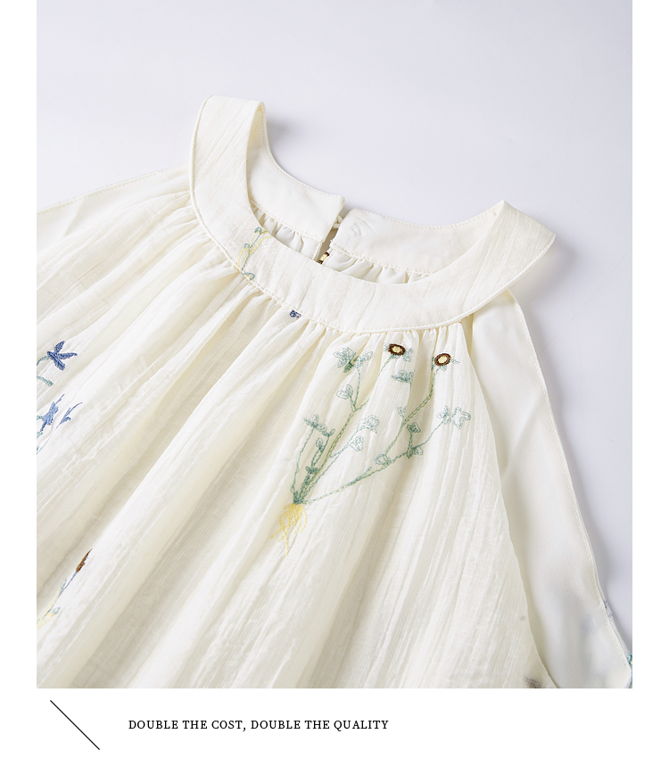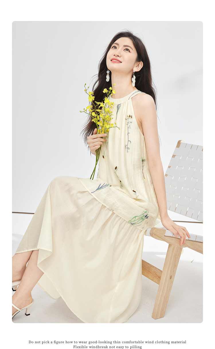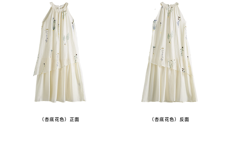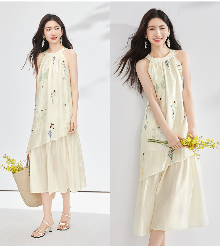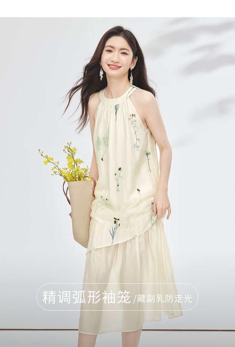 【专属特价】熙世界莱赛尔无袖挂脖连衣裙女夏季法式绝美假两件植物刺绣长裙子