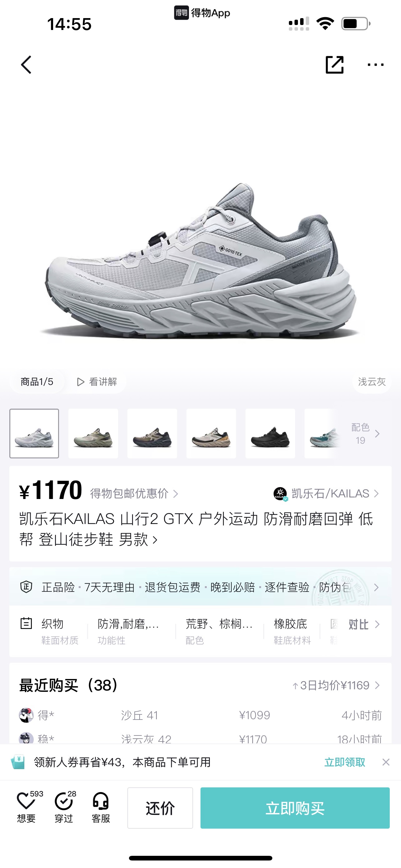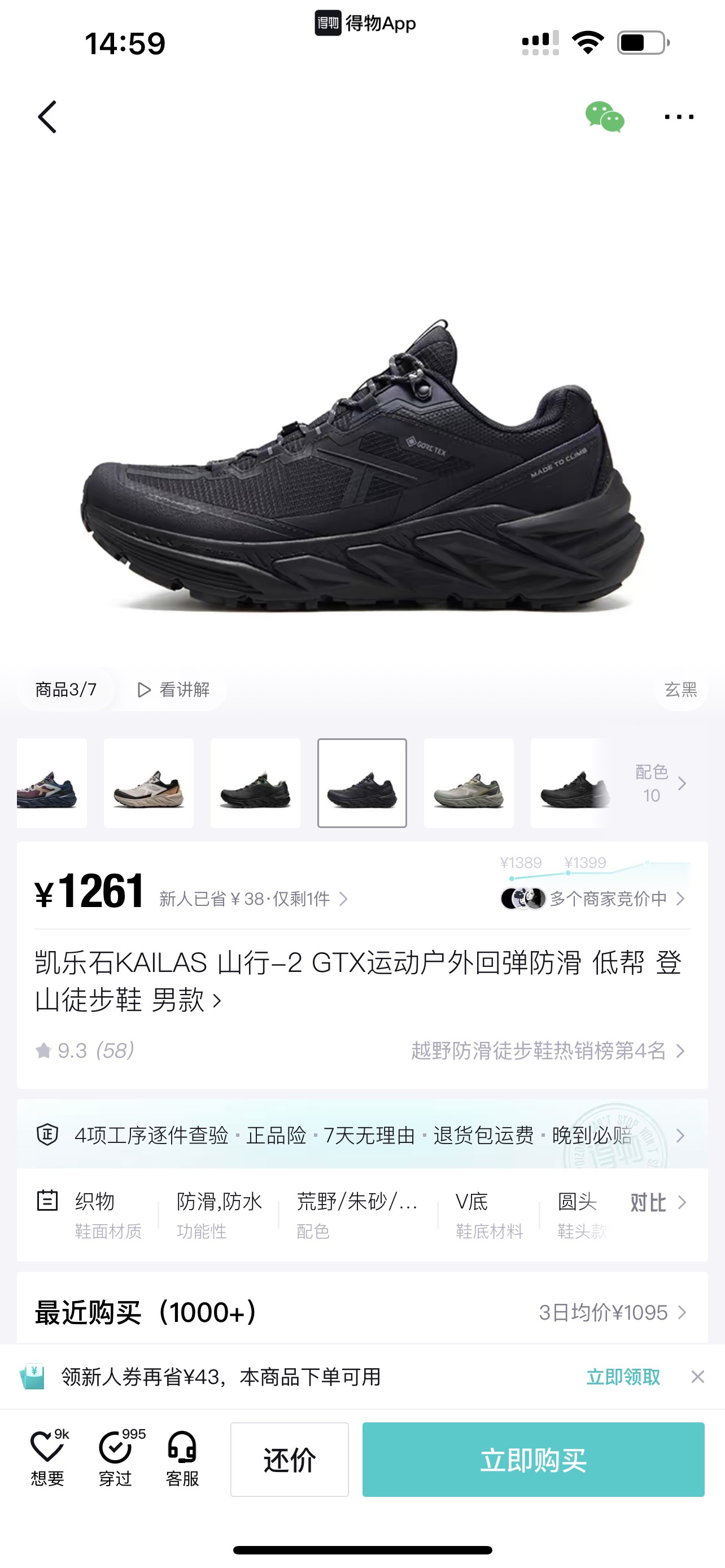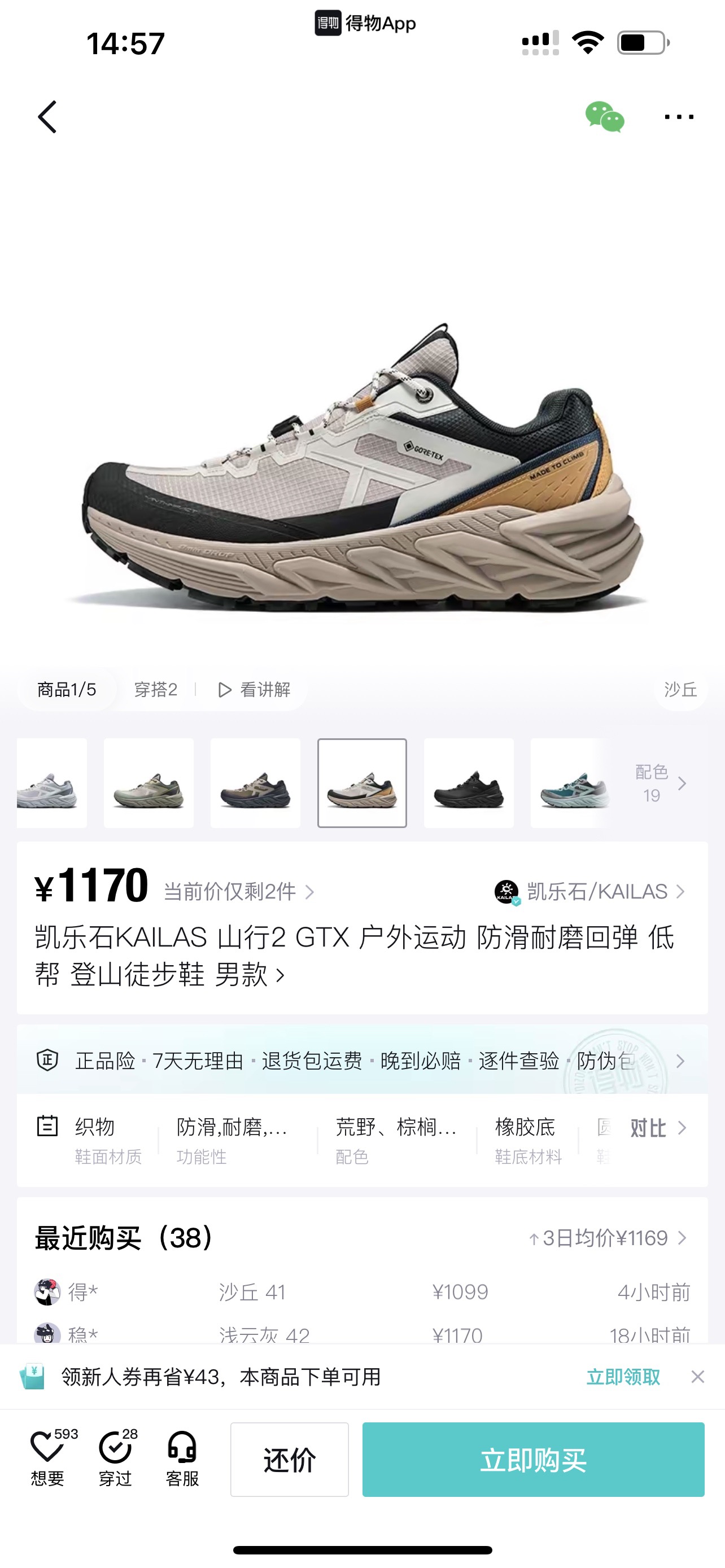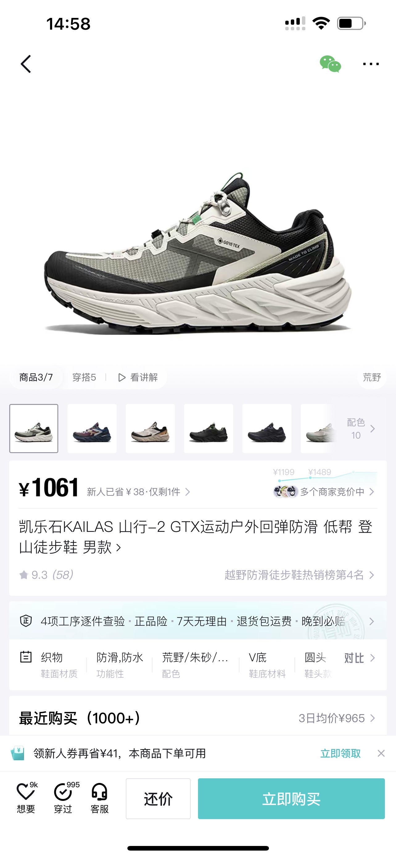 凯乐石 山行2 GTX 防水户外运动防滑耐磨回弹 低帮登山徒步鞋 特惠 Z-15832