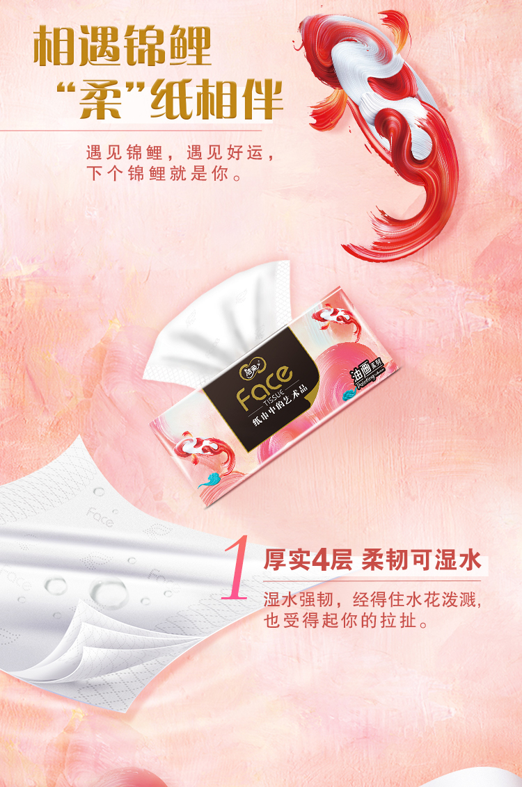 TR284-48R洁柔Face油画锦鲤6包软抽80抽4层*3提