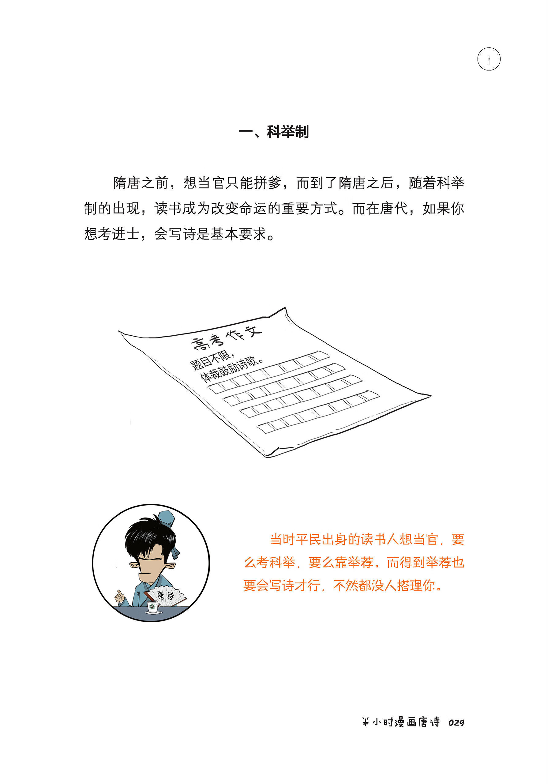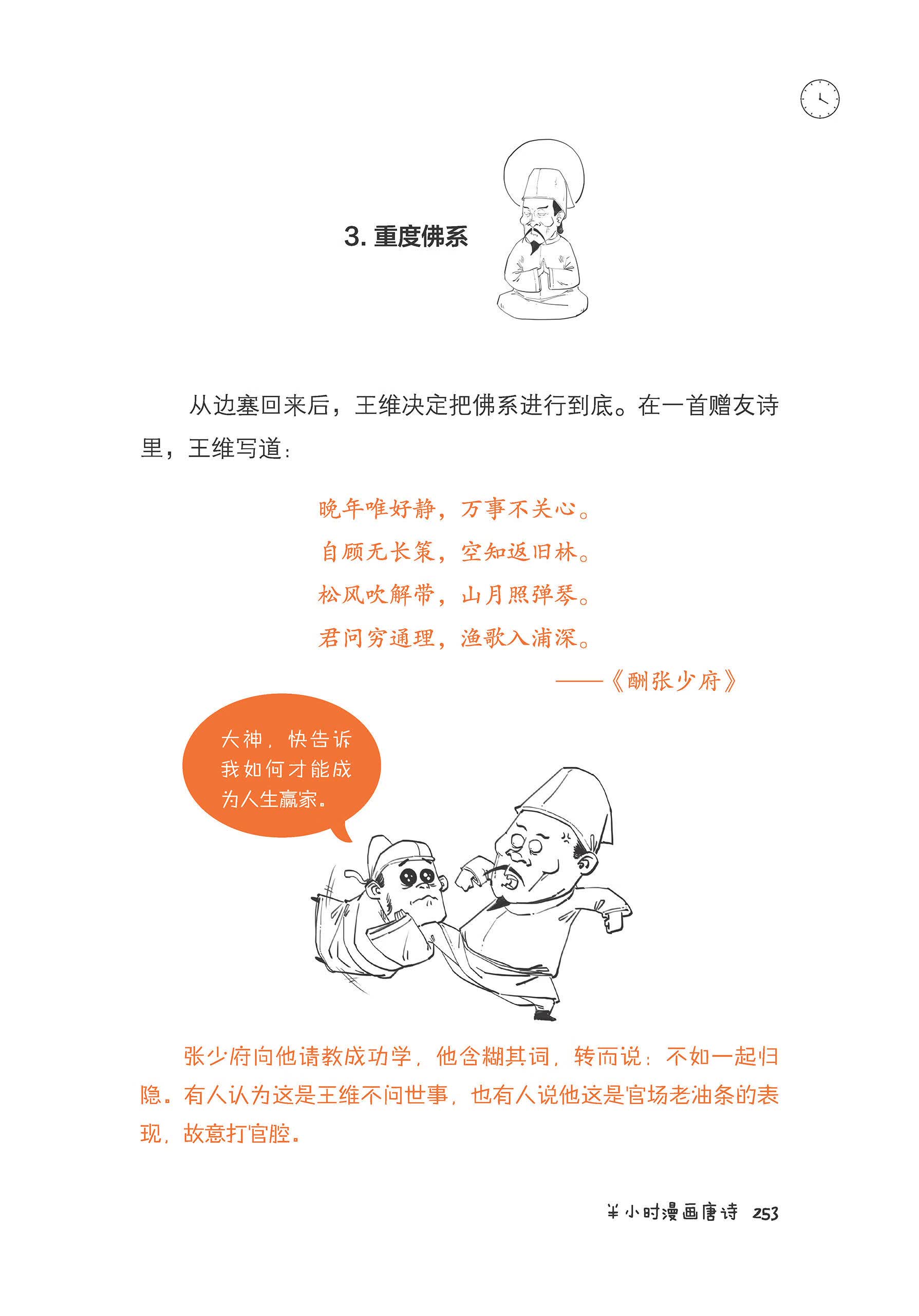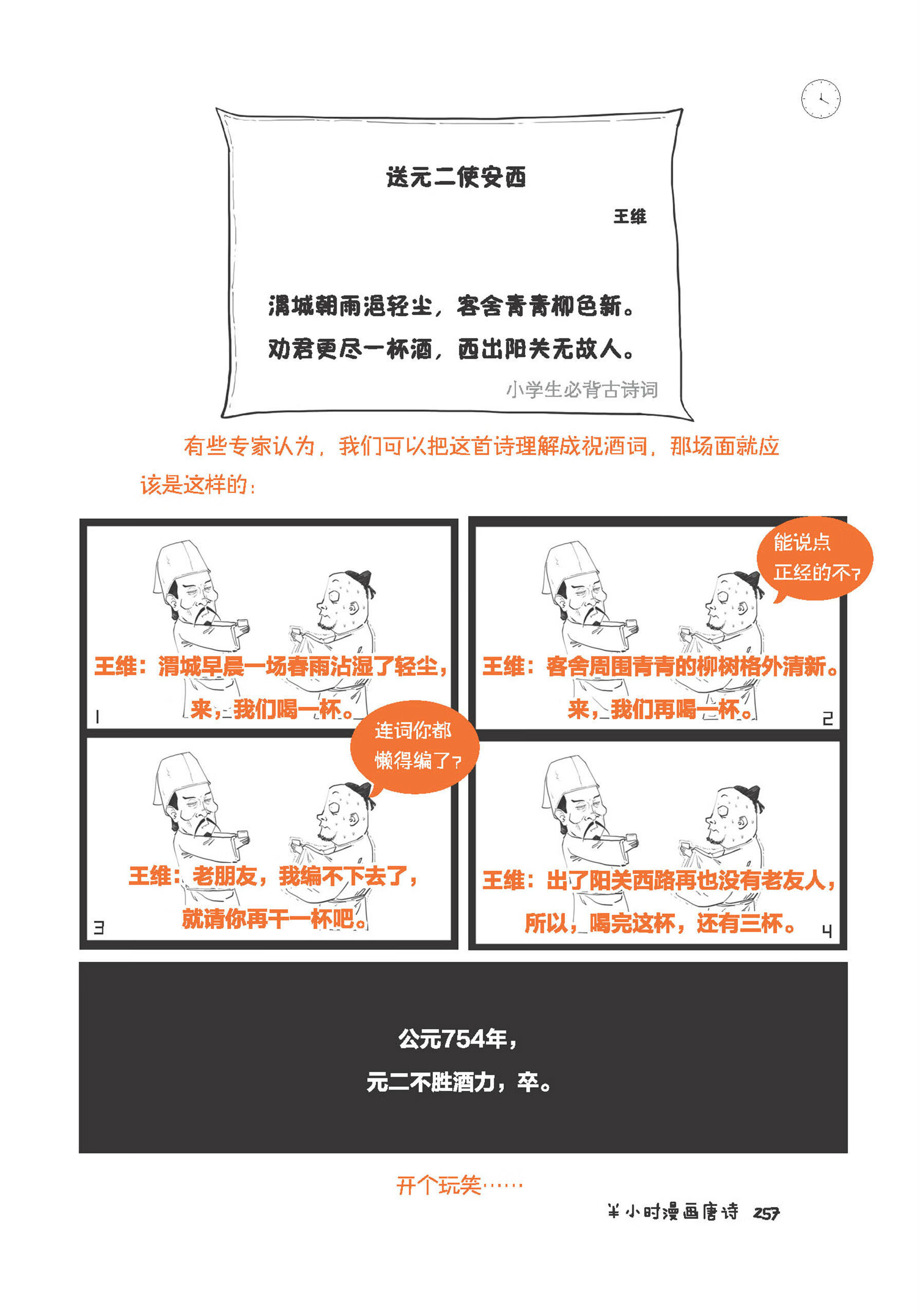 通过手绘漫画和段子,陈磊(笔名:二混子)领衔的半小时漫画团队带我们重新读懂了那些从小背到大的唐诗:李白喊出“安能摧眉折腰事权贵,使我不得开心颜”是因为朝廷总不让他当大官,内心憋屈;王之涣写下“欲穷千里目,更上一层楼”,不是因为立志从军来到边塞抒情,而是因为他的家就在边塞;王维的“空山不见人,但闻人语响”能做到“诗中有画,画中有诗”,多少与他的豪华别墅和带薪休假有关……