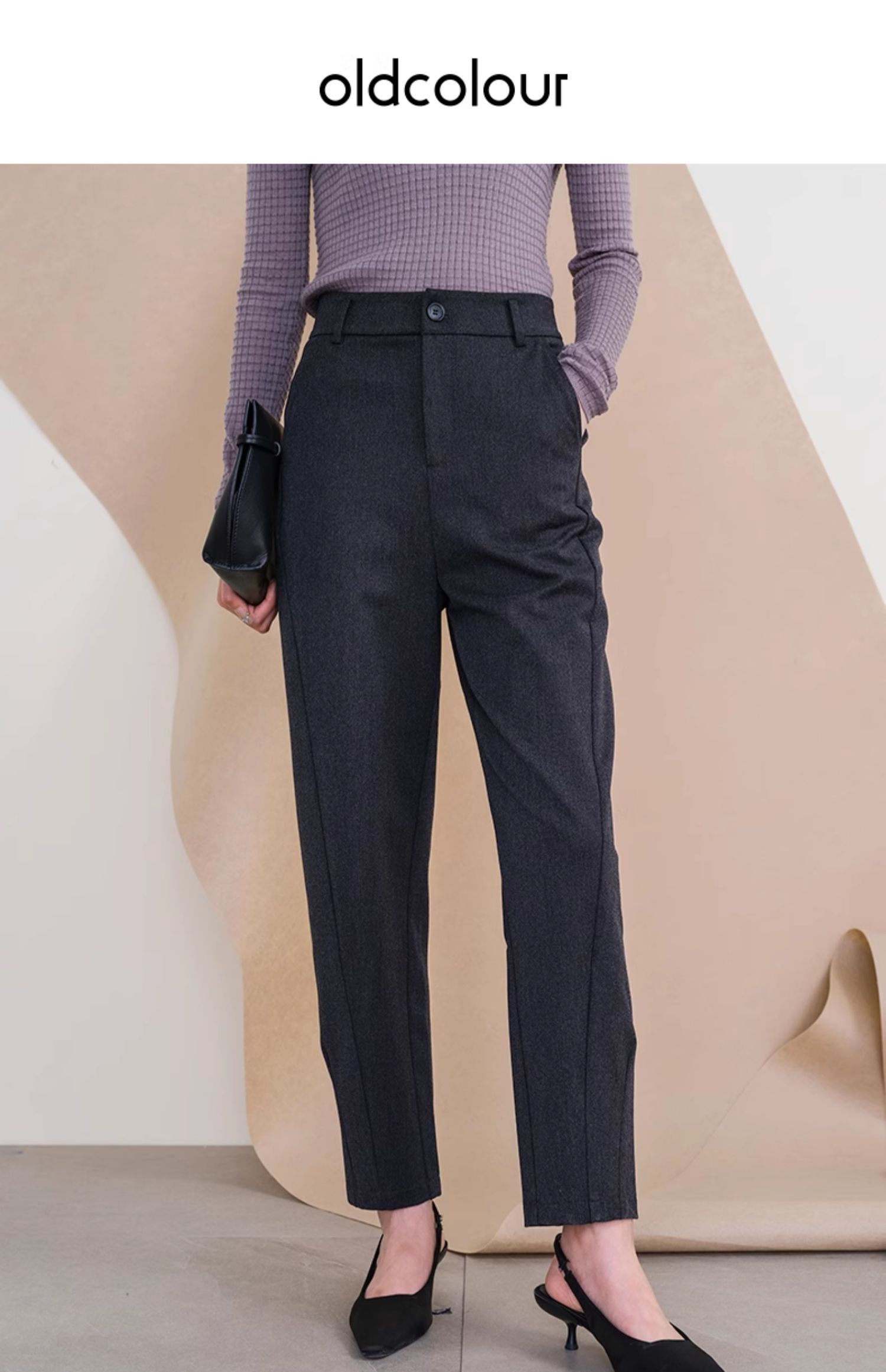 oldcolour冬季新款纯色高腰显瘦直筒百搭气质休闲裤女O44073428