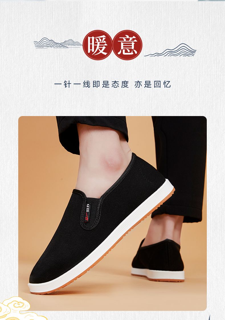 回力男鞋秋季老北京布鞋牛筋底软底懒人一脚蹬素面休闲爷爷黑布鞋