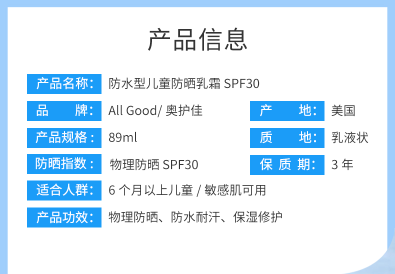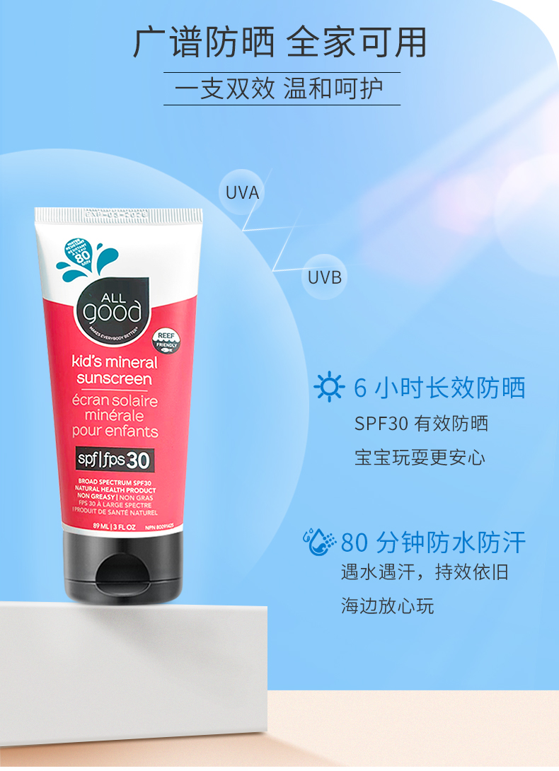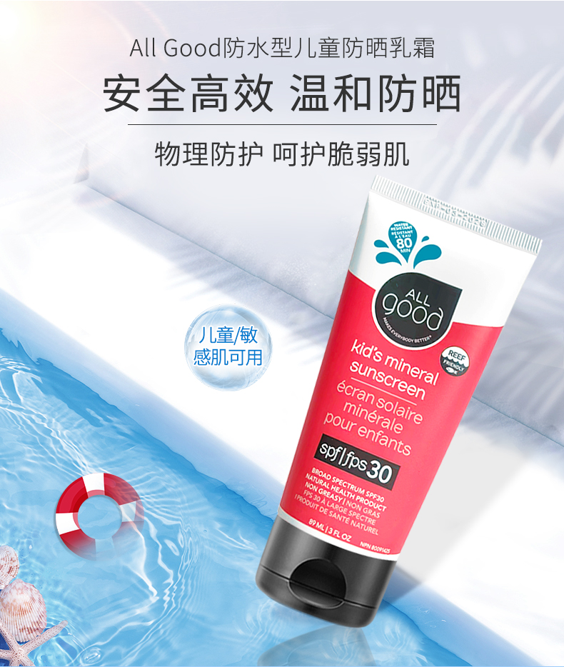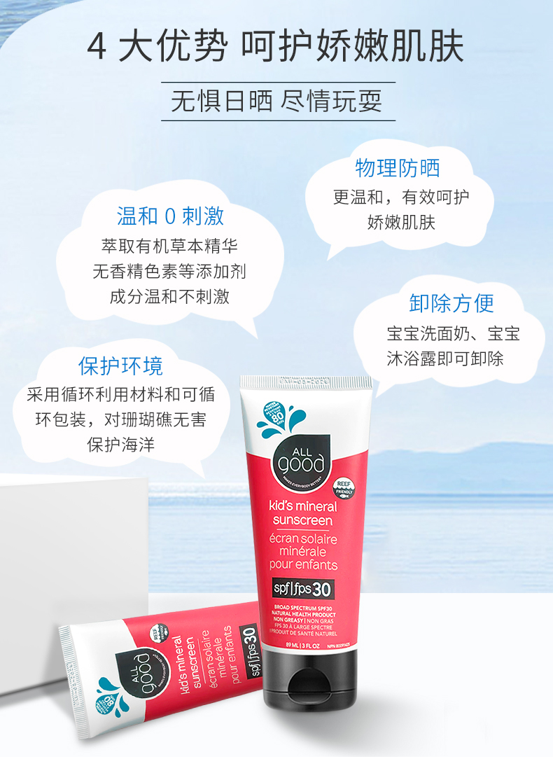 allgood/奥护佳儿童防晒霜物理防晒宝宝防晒乳霜温和防晒全身可用