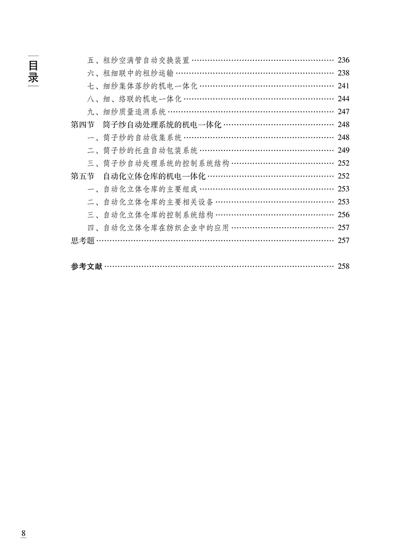《纺织机电一体化(版)》从机电一体化基础知识及机电一体化技术在纺织机械上的应用两方面对纺织机电一体化技术进行了比较系统的介绍。机电一体化基础知识主要括计算机控制系统中的计算机、计算机控制系统中的总线与多机通信、计算机控制系统的接口技术及抗干扰措施、计算机控制系统中的常用数据处理技术、计算机控制系统中的控制策略及常用执行元件的原理及应用等。对机电一体化技术在纺织机械上的应用主要以清梳联、并条机、精梳机、粗纱机、细纱机、自动络筒机、整经机、浆纱机、织机及纺纱车间物流为例进行了介绍
