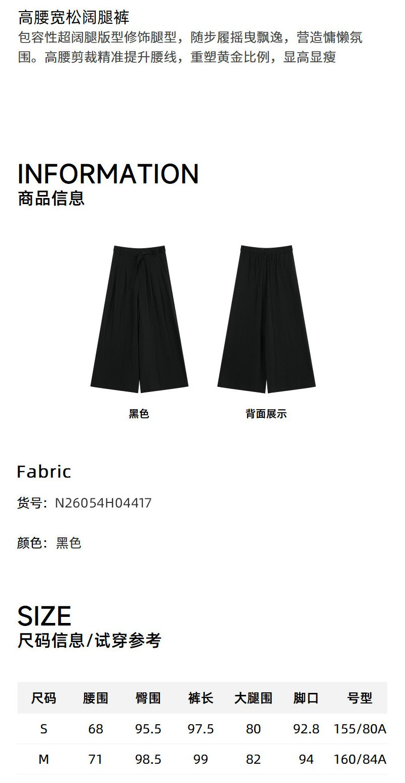 NEELLY纳俪商场同款夏新款随性休闲高腰阔腿裤女百搭个性直筒长裤N26054H04417