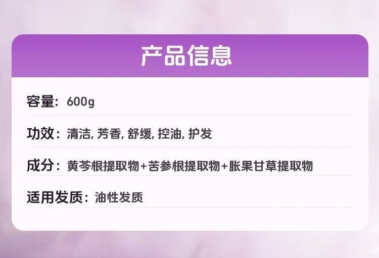 片仔癀牌黄芩系列舒缓蓬松香韵洗发乳(控油蓬松)/1瓶(600g)
