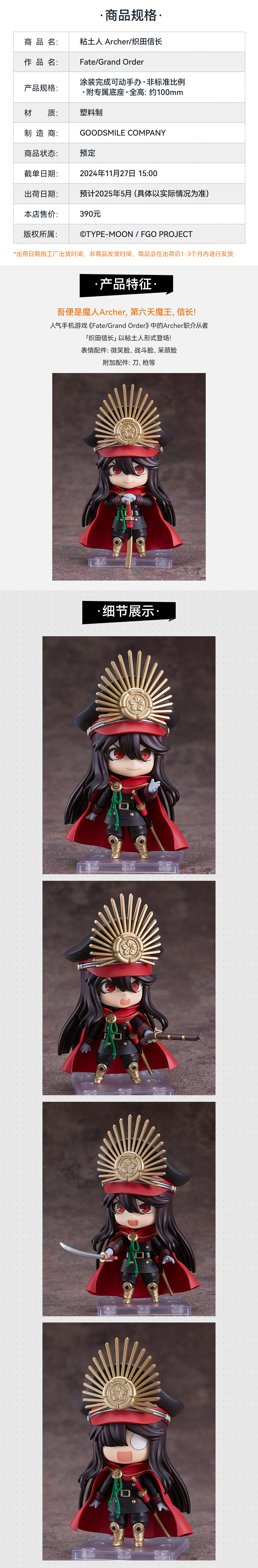【GSC现货】粘土人 Archer/织田信长 Fate/Grand Order