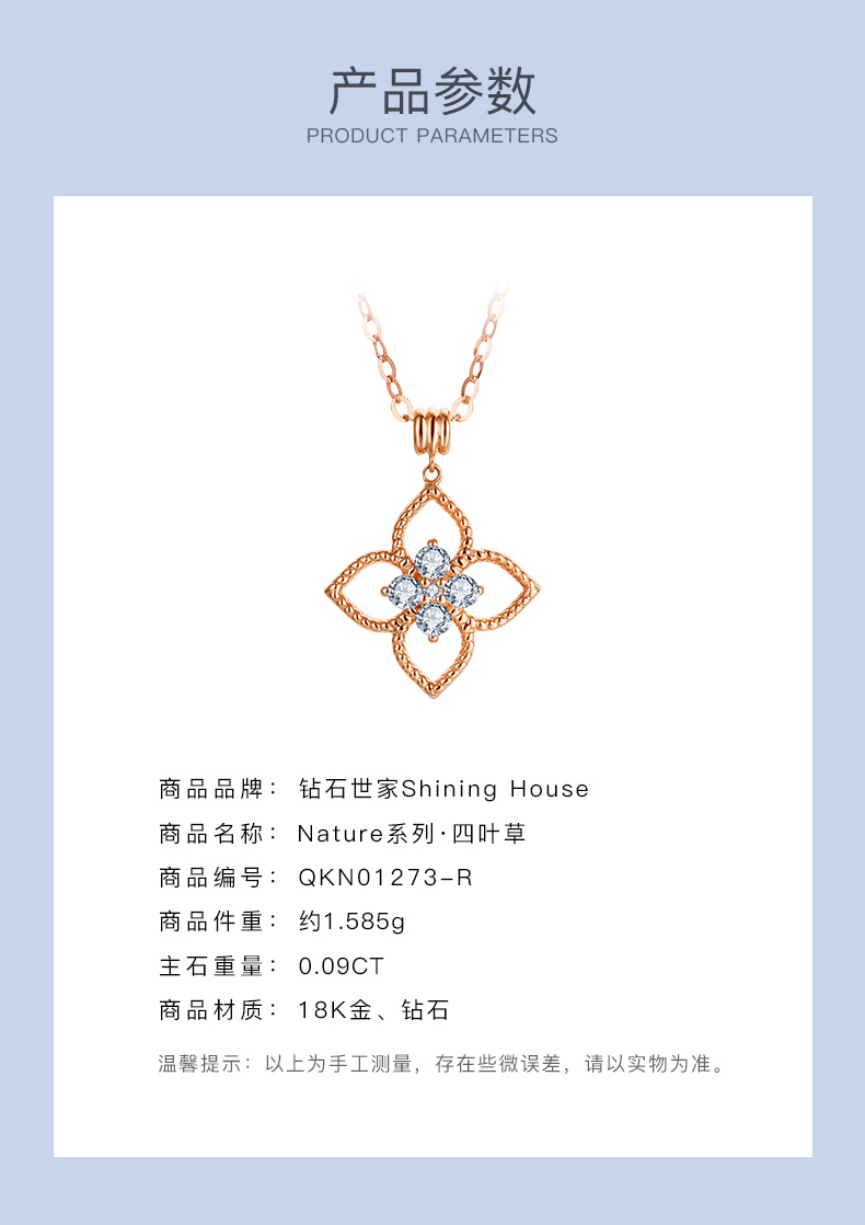 【甄选钻饰】【专享】钻石世家 18K钻石项链 Nature系列 四叶草轻奢钻石项链