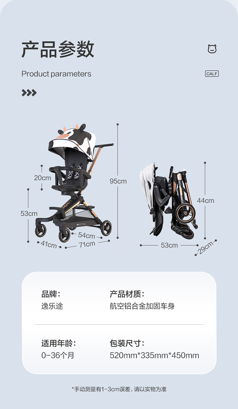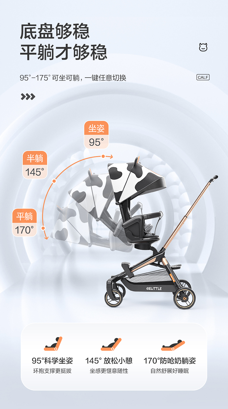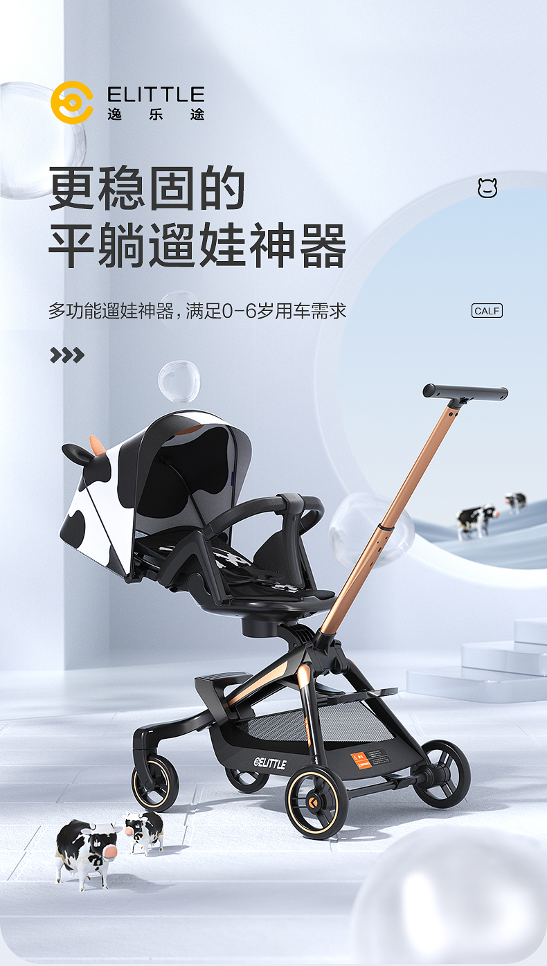 elittle逸乐途小奶牛遛娃婴儿手推车溜娃神器超轻便可折叠可坐躺