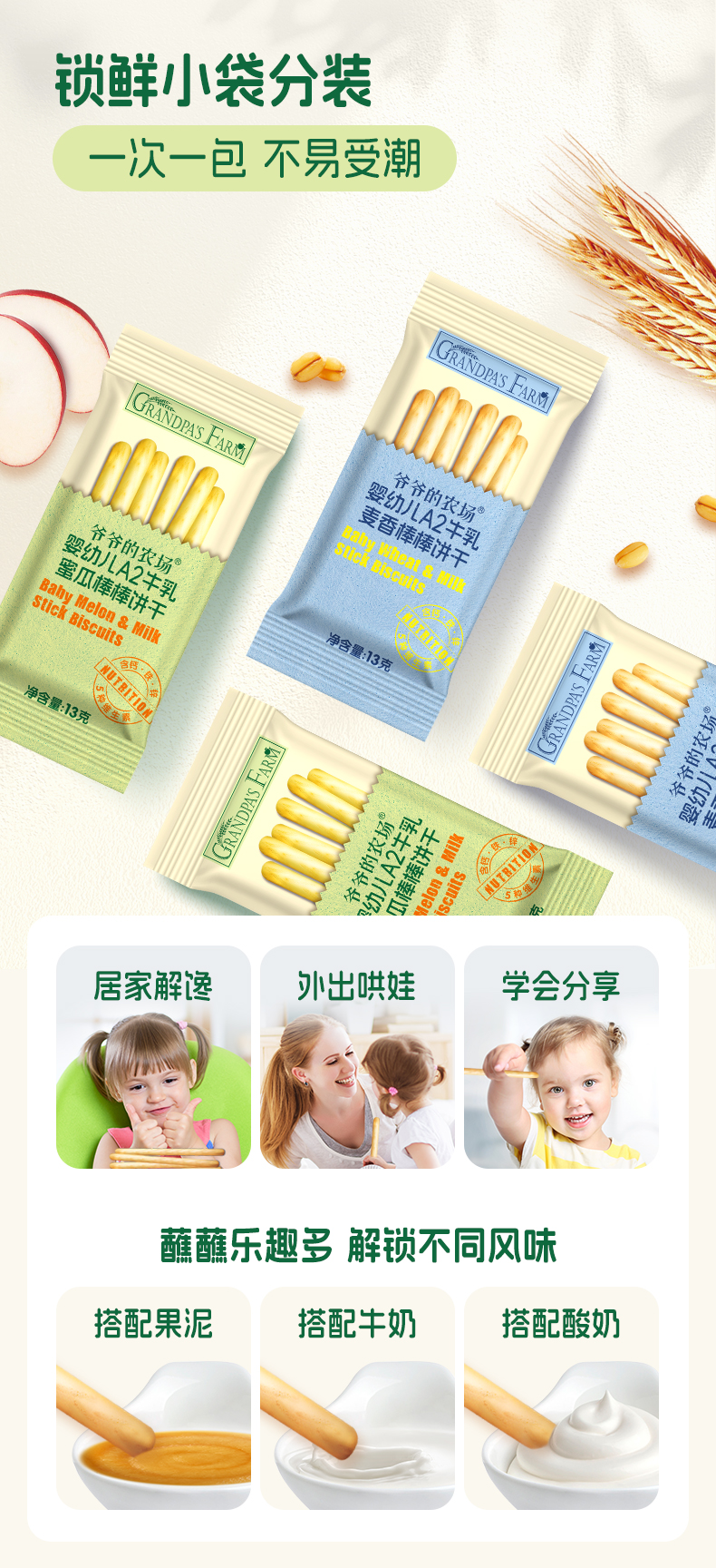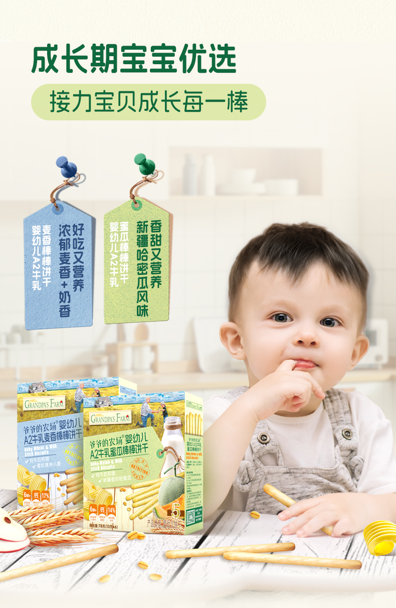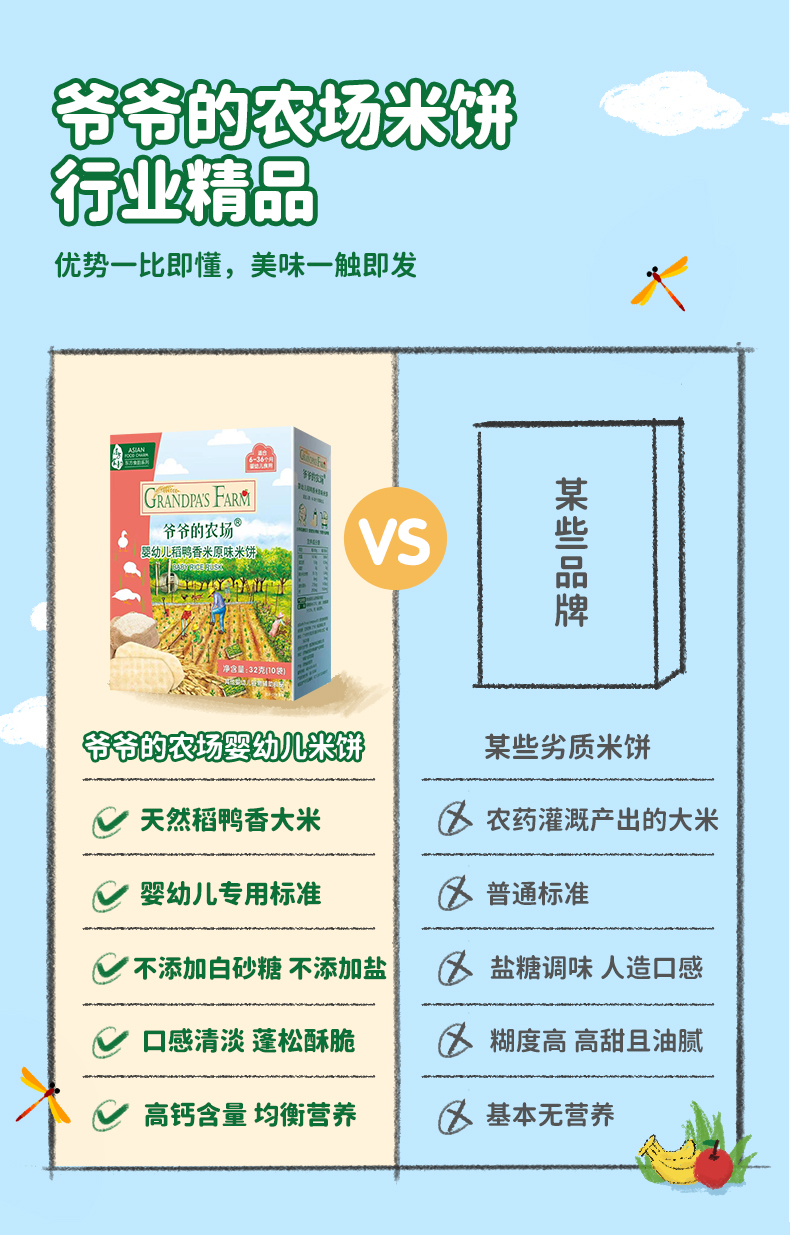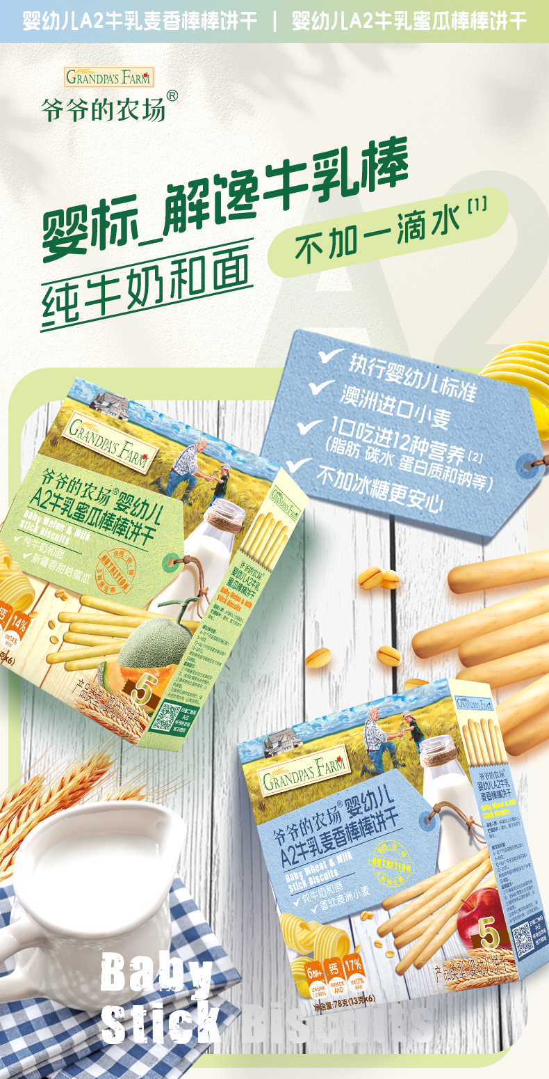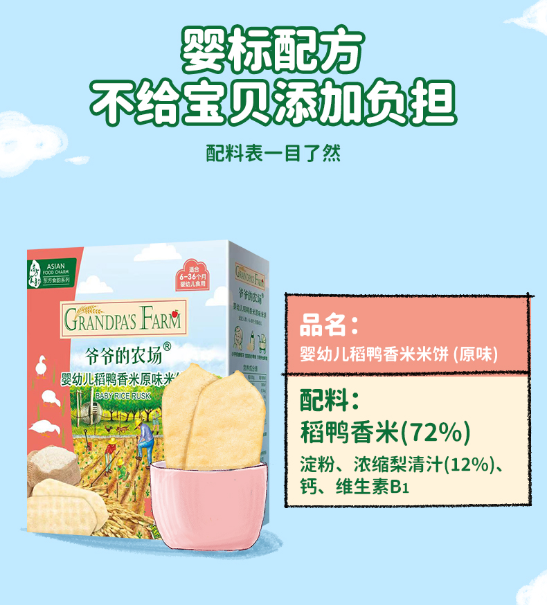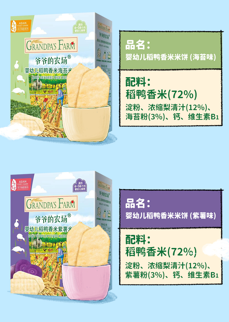 爷爷的农场稻鸭香米饼*2盒/牛乳棒棒饼干*2盒