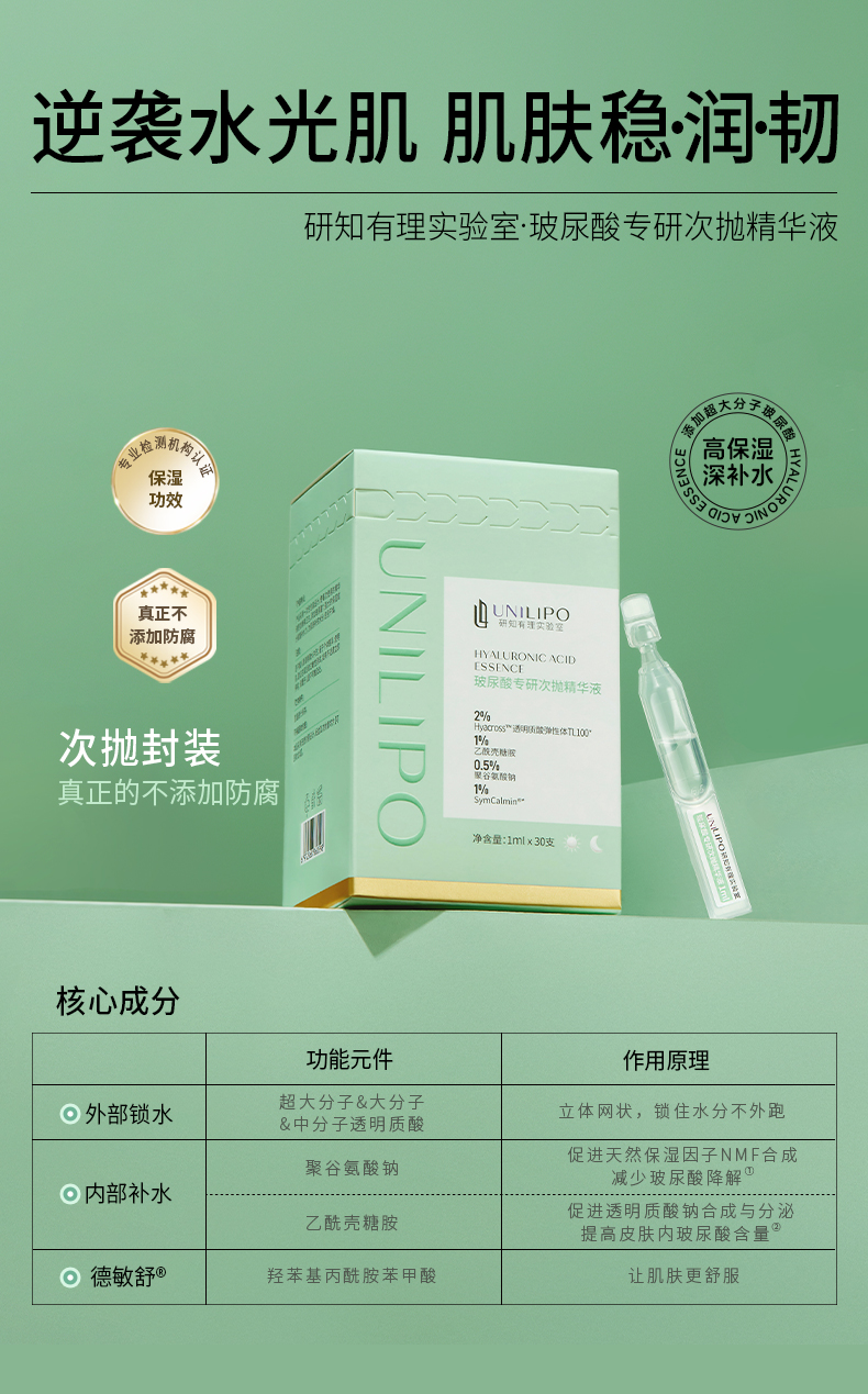 【玻尿酸次抛精华】UNILIPO研知有理玻尿酸补水次抛精华【1ml*30支/盒】