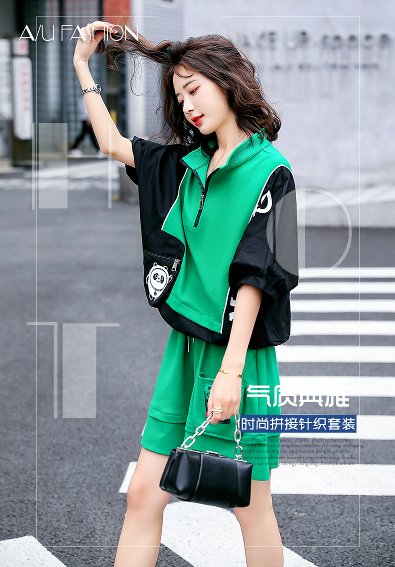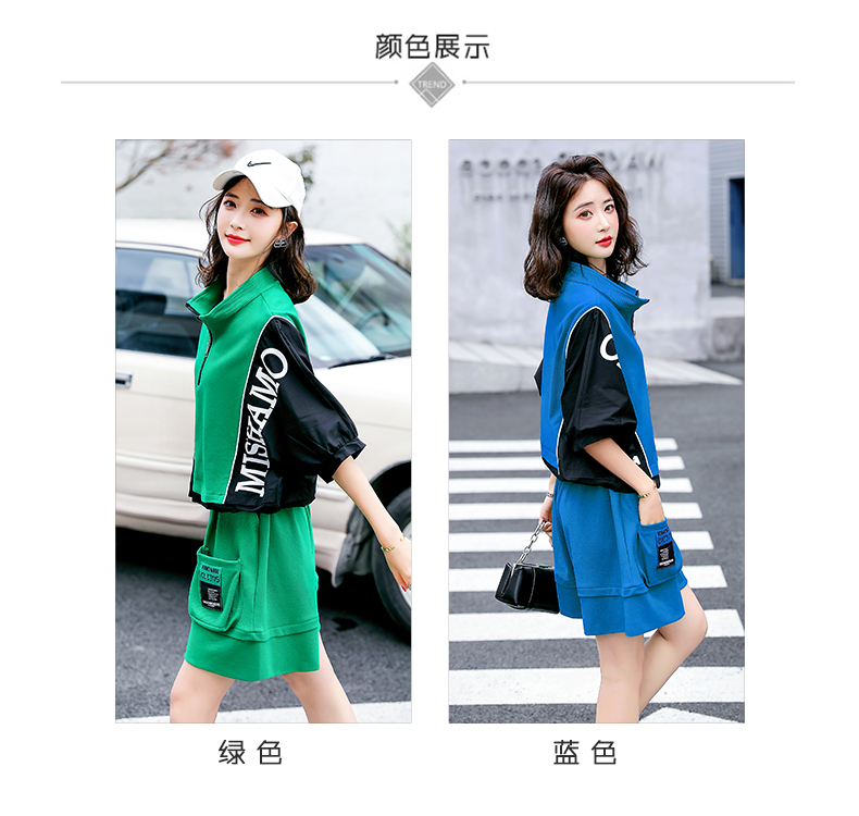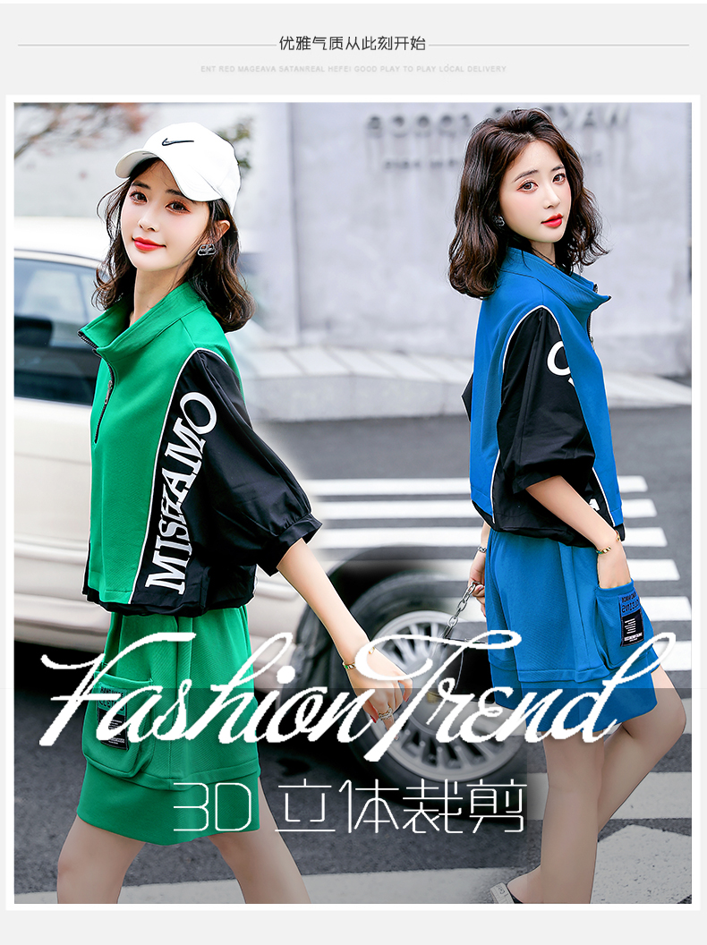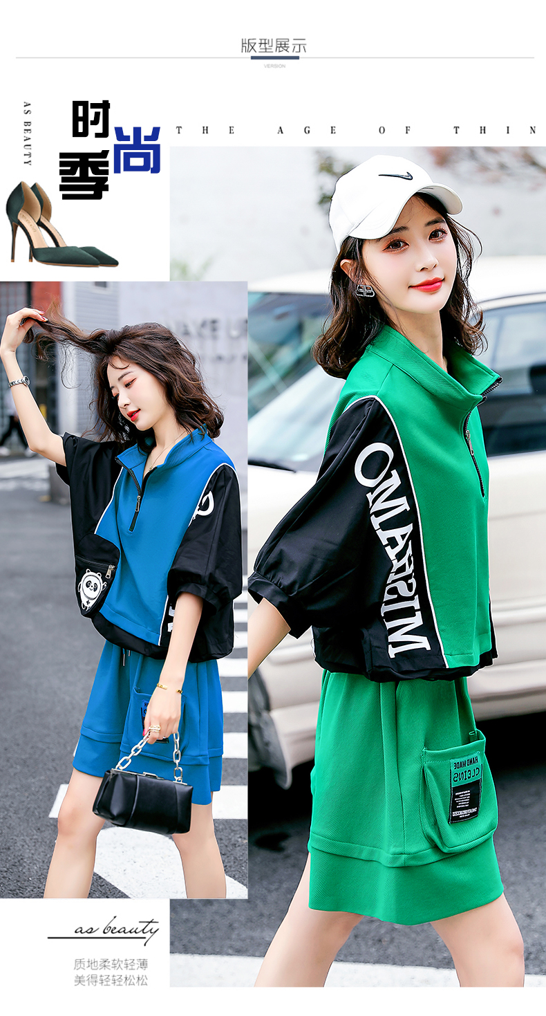 夏季新款,宽松运动休闲拼接字母短裙裤中袖上衣两件套HR-CZJ7115