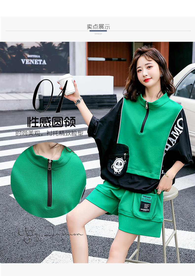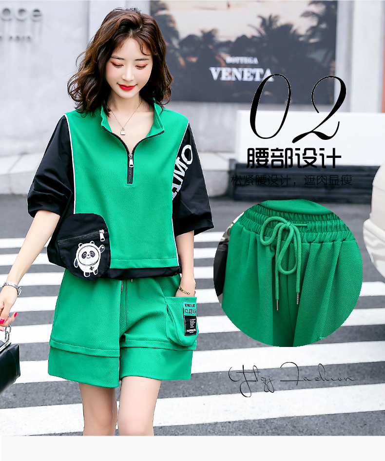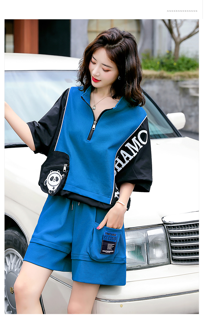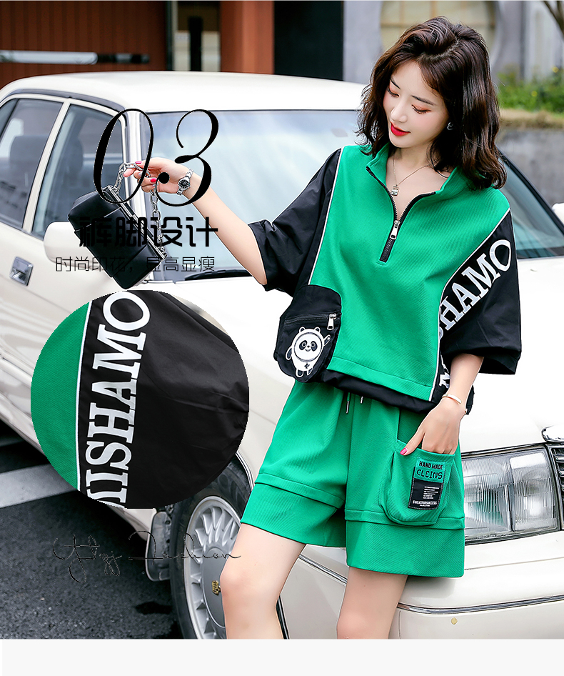 夏季新款,宽松运动休闲拼接字母短裙裤中袖上衣两件套HR-CZJ7115