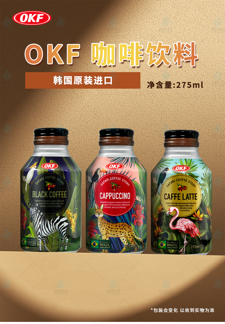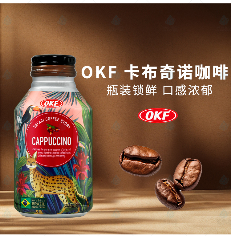 OKF卡布奇诺/拿铁/无糖黑咖啡饮料275ml 瓶装锁鲜口感浓郁 024927/024926/024925