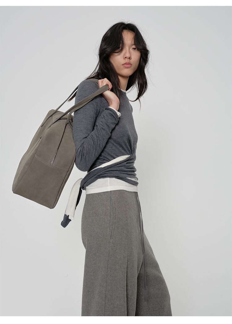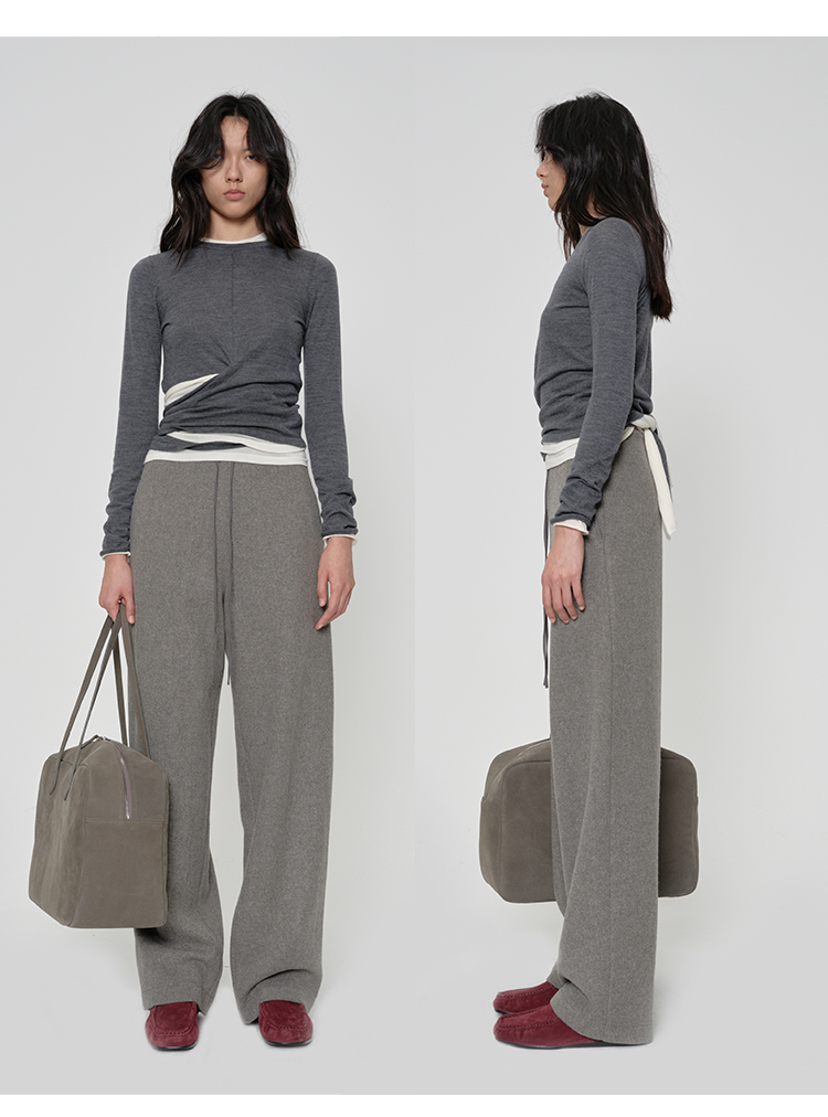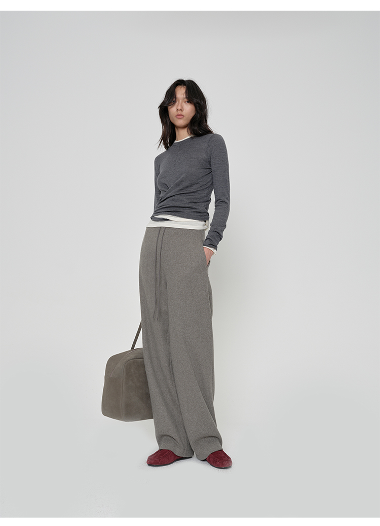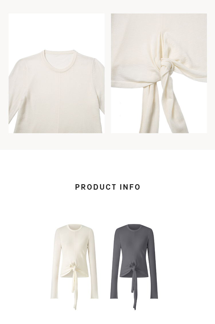 HIDEMI 进口澳洲极细美利奴羊毛圆领绑带设计感多穿式长袖毛衣 炭灰色/原白色