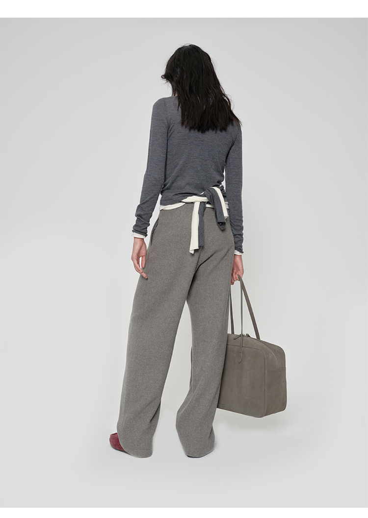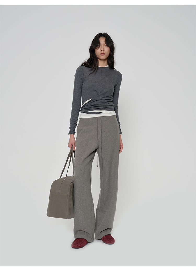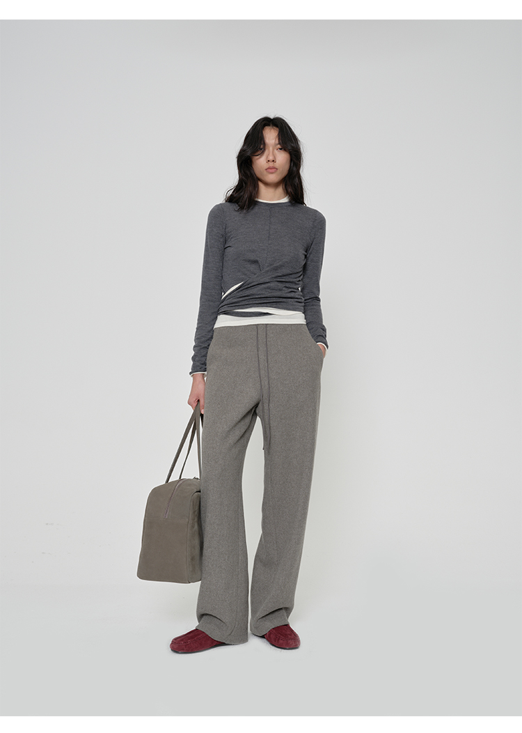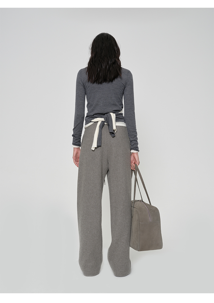 HIDEMI 进口澳洲极细美利奴羊毛圆领绑带设计感多穿式长袖毛衣 炭灰色/原白色