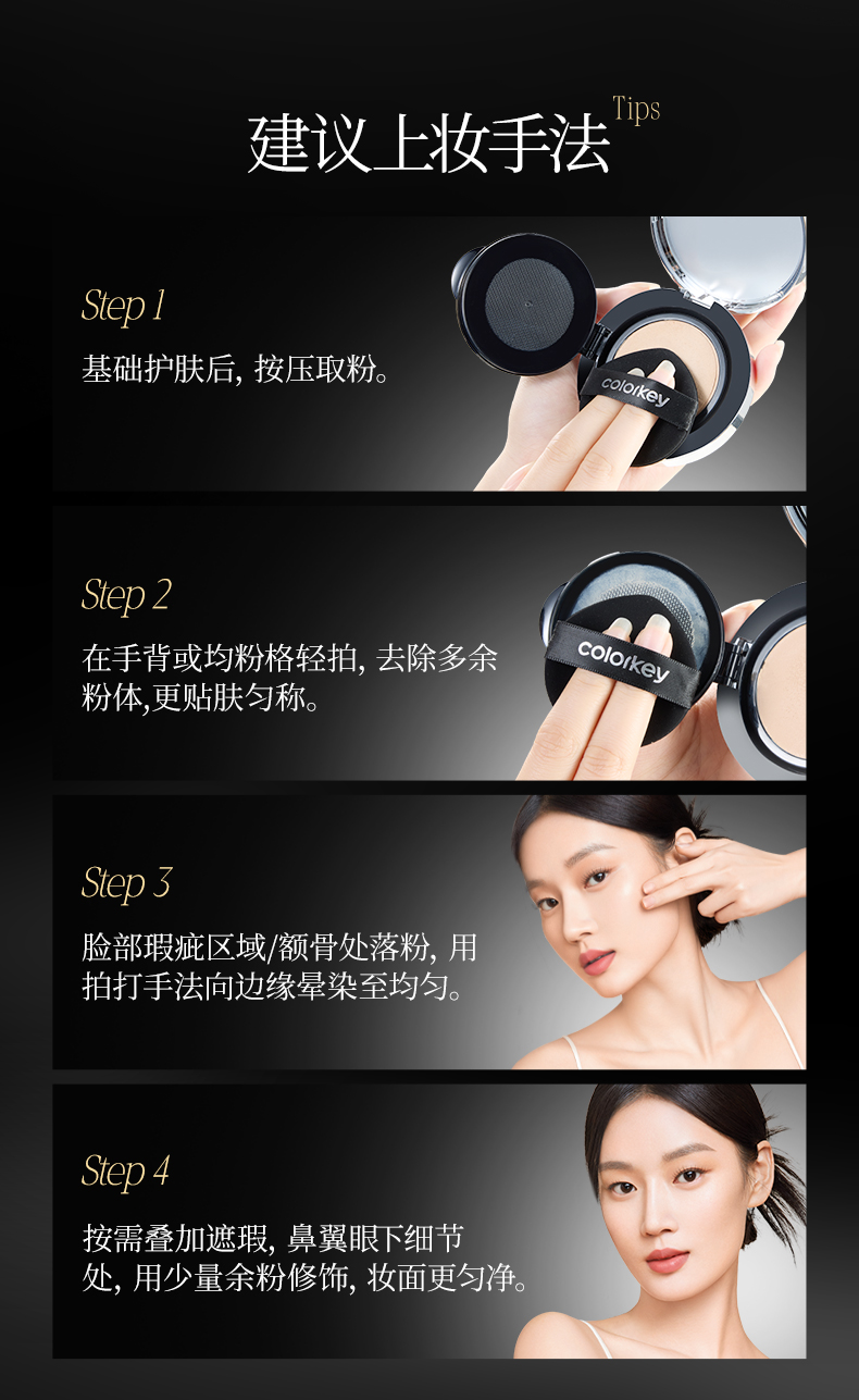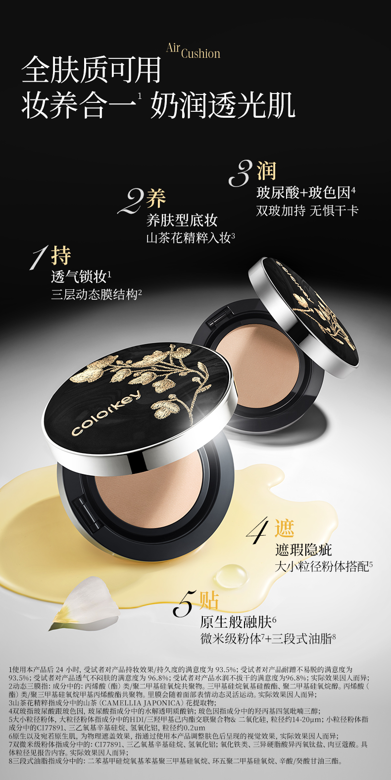 【新人专享 209/件 领券再减30元】Colorkey珂拉琪山茶花双玻气垫干皮控油细腻不易卡粉