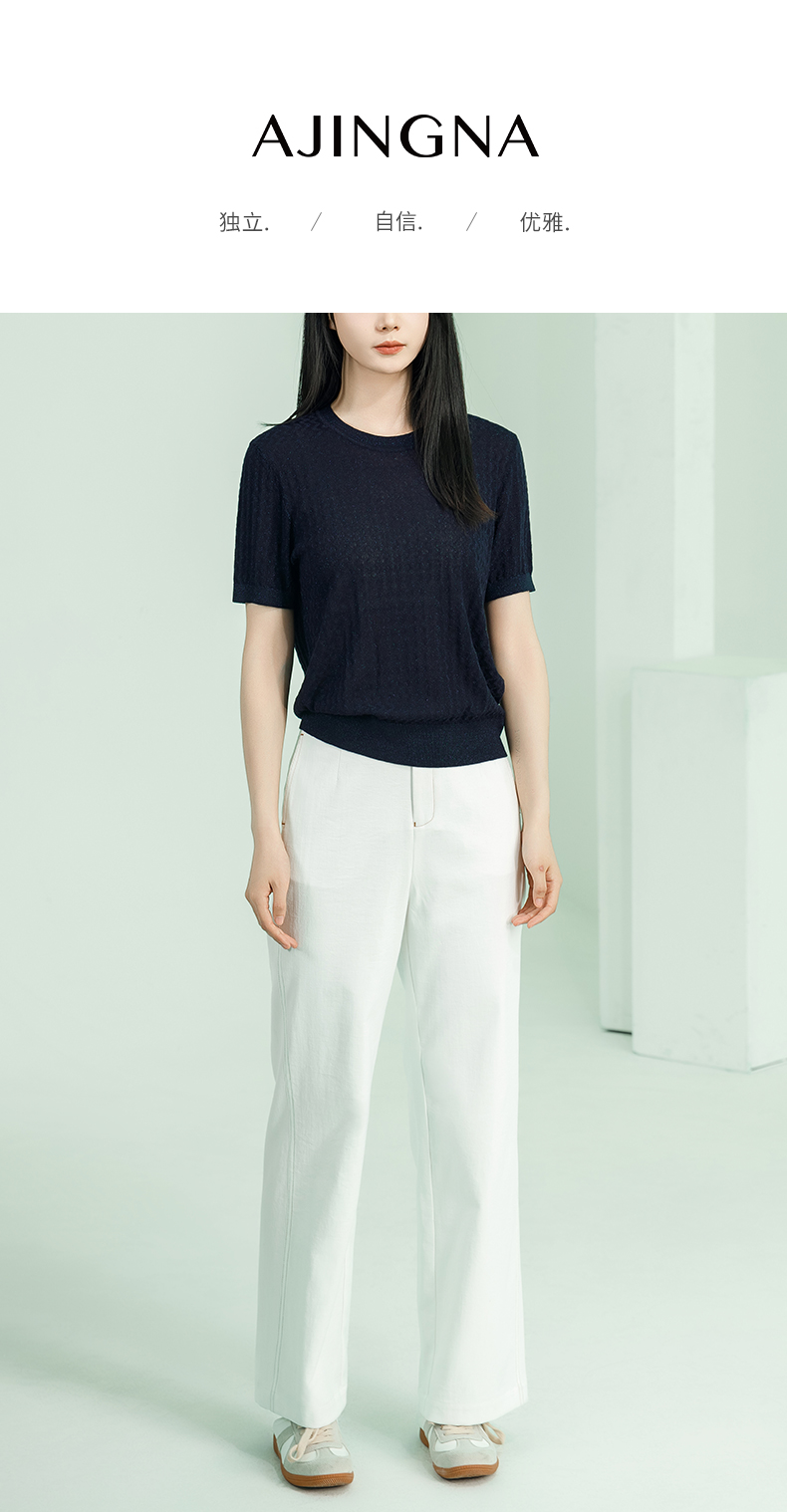 【商场同款】阿菁娜夏季新款直筒经典撞色线牛仔裤A29X110073