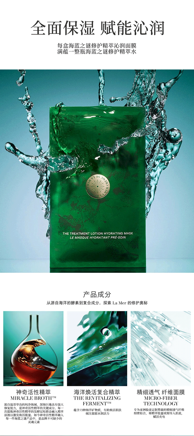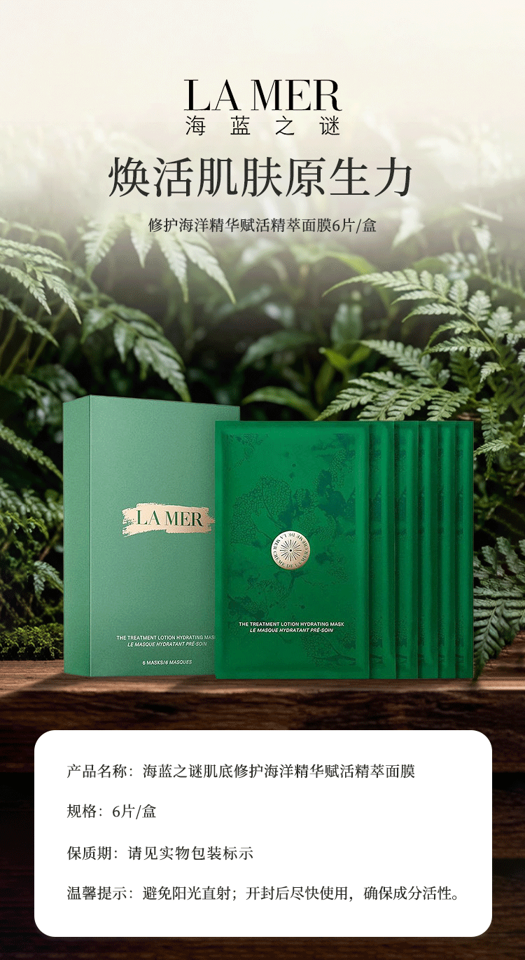 【海蓝之谜 LA MER海蓝之谜肌底修护海洋精华赋活精萃面膜6片/盒】保湿修护 轻薄服帖如第二层肌肤