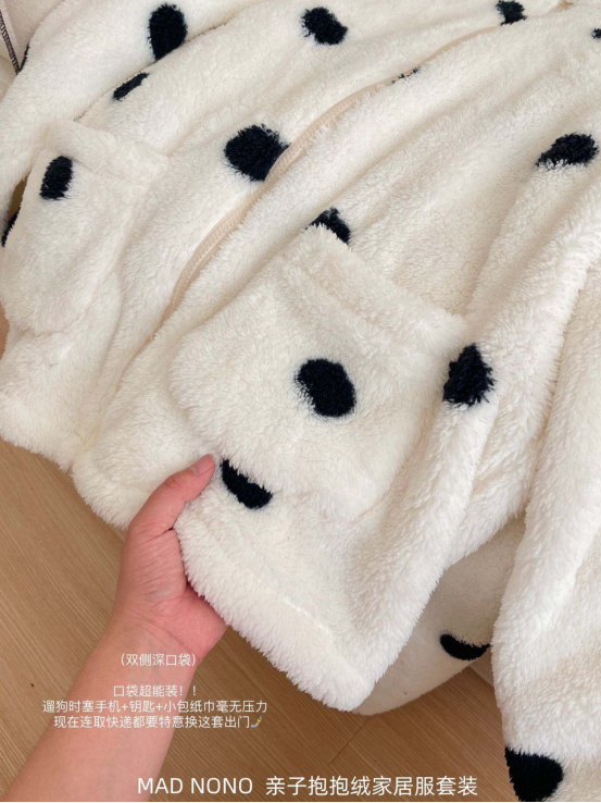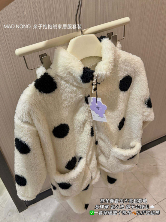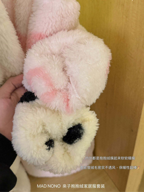 孩子穿着它,像个小天使;我穿着它,仿佛回到了童年。 🌼✨我们一起玩游戏、喝果汁,享受这简单却珍贵的时光。 生活不需华丽,有爱便足够温暖。❤️👨👩👧 @暖暖 MAD NONO 亲子抱抱绒家居服套装