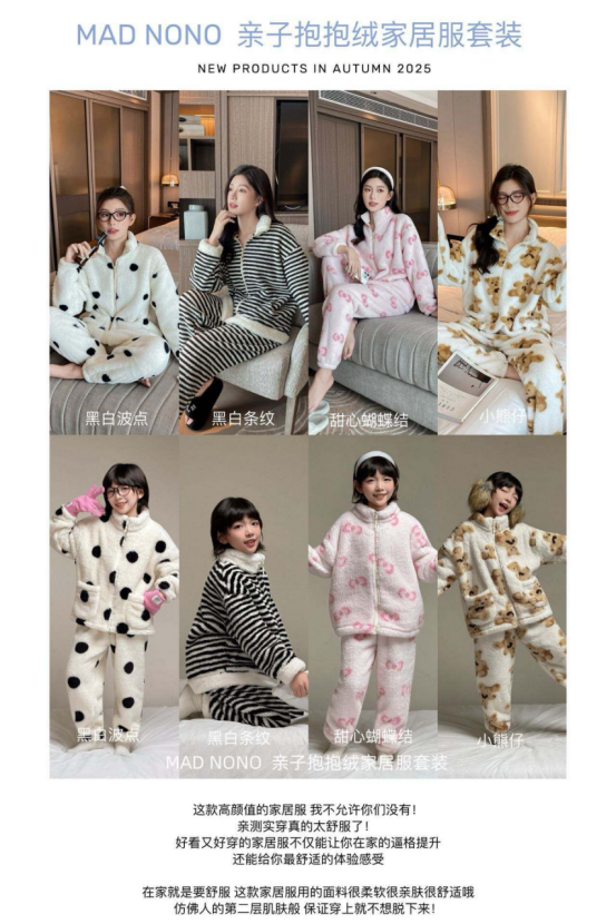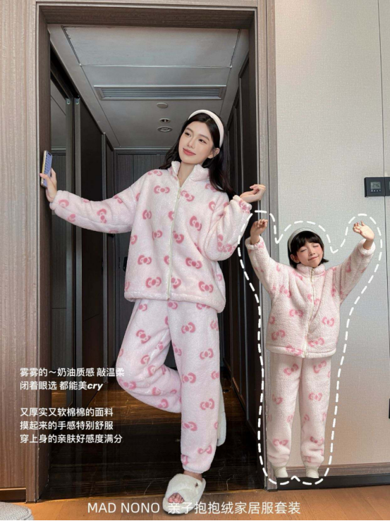 🌸亲子𝐃𝐚𝐲𝐬 |好好陪伴 慢慢长大💕💕幸福,是一种无声的陪伴‼️【MADNONO亲子抱抱绒家居服套装】 ✅它不仅是一套衣服,更是一种情感的寄托,❣️一种陪伴的象征