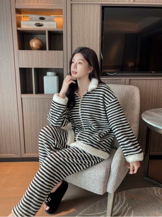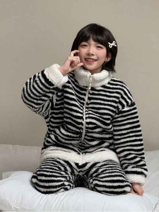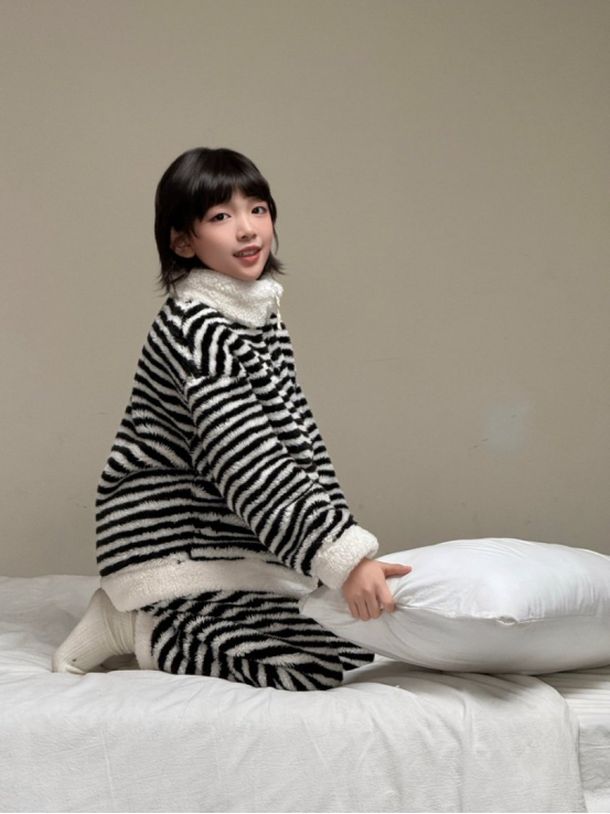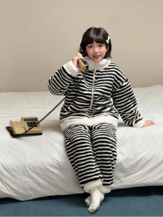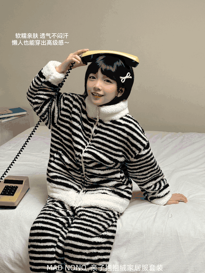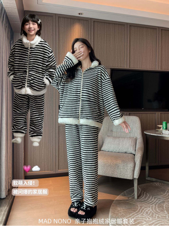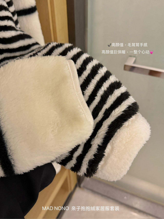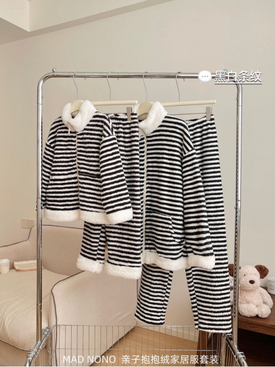 黑白条纹款: 一起穿家庭装亲子睡衣 💕 亲子甜蜜时光 宅家穿亲子装🧸 云朵☁️般柔软面料 秋冬居家更温暖😄