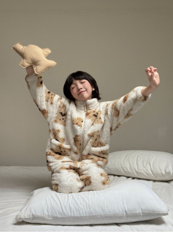 亲子幸福具象化的一些瞬间🧸 天气一冷就喜欢宅在温柔又舒适的家里 吃吃零食追追剧 换上新入手的海岛绒睡衣 暖暖的简约慵懒感