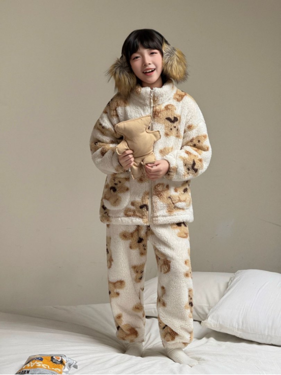 最近南北方也降温啦 我们怕冷星人已经天天开着暖气了.. 暖暖的亲子家居服必须安排 巨暖和巨柔软