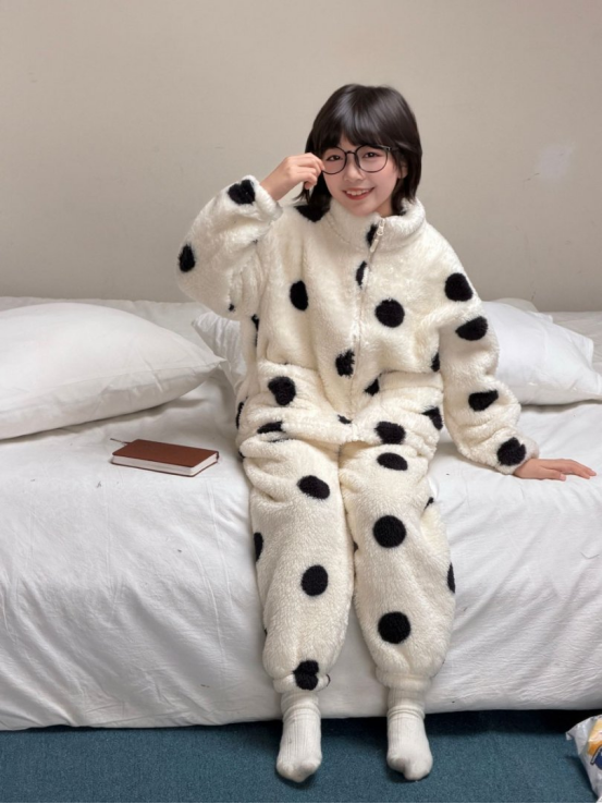 冬天的周末 穿着温暖的睡衣 在惬意的家里 惺忪的醒来~~ 秋冬的慵懒感🧦 奶乎乎的抱抱绒不输所有!! 🐈 气温骤降 暖暖的绒才是我身体的救赎