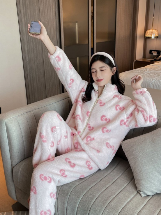 🛋️ 宅家日记 一套暖绒绒的家居服 是居家幸福感来源的一部分 抱抱绒巨舒服 奶乎乎色系 这套冬日必囤