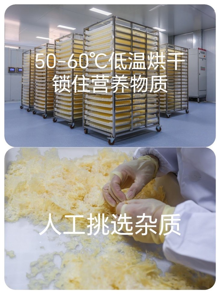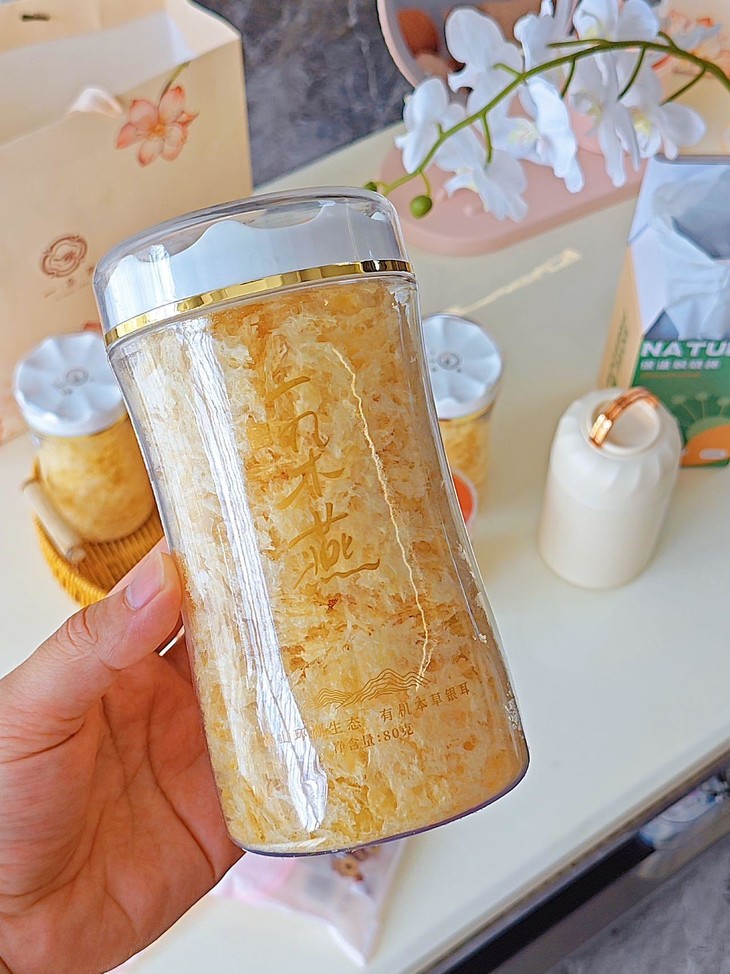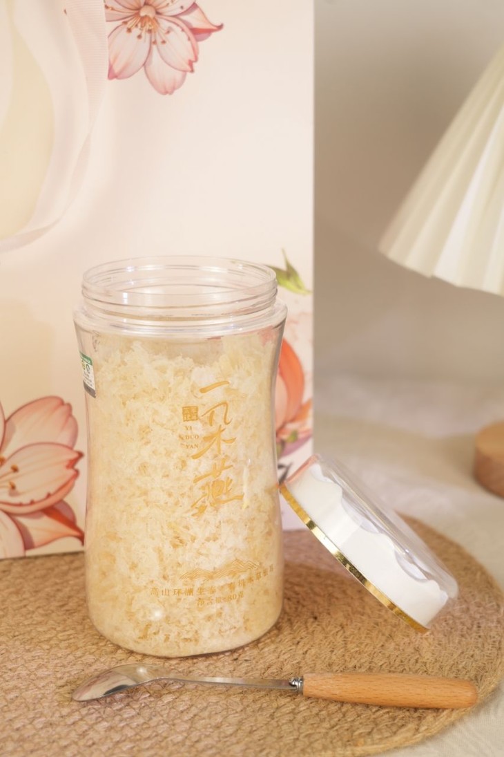 一朵燕有机本草银耳它结合了破壁处理工艺,将银耳营养变成小分子结构。无需熬煮,快速出胶,人体更易吸收。 每一朵鲜本草银耳仅能制成约6克成品。历经十多道工序,只保留鲜嫩耳瓣,弥足珍贵。 随时随地无需开火,用附赠的保温杯即焖即喝, ✔️ 特别适合打工人、学生党、早上送娃上学、办公室能量补充、姐妹们下午茶...... 一朵燕有机本草银耳它结合了破壁处理工艺,将银耳营养变成小分子结构。无需熬煮,快速出胶,人体更易吸收。 好银耳 好环境:高山生态,本草培植 平均生长海拔在800-1100M的高山 深林覆盖率高,负氧离子丰富 每一朵都由经验丰富的菇农 经过60天人工精心呵护