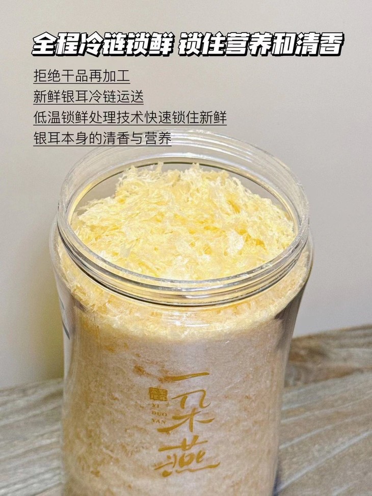 『一朵燕』是专业做银耳的品牌 远离硫磺薰过的“毒银耳” 强烈推荐大家选择这款以茯苓、百合、莲子、枸杞、银耳基、盐麸木、山药、枣仁、小扁豆、炒麦芽、黑芝麻、白术12种本草食材作为培养基的有机银耳 营养丰富! 食养必备 👍🏻👍🏻👍🏻