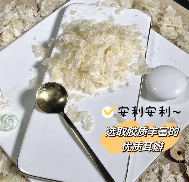 产品卖点 1.有机认证 2.配料表干净,仅有银耳 3.来自国家地理标识产品,福建古田原产地 4.银耳是药食同源的产品,富含膳食纤维,银耳多糖,16种氨基酸等。 5.好便捷,闷烧杯焖20分钟即可食用。 6.私域最卷机制 7.SGS602项0检出