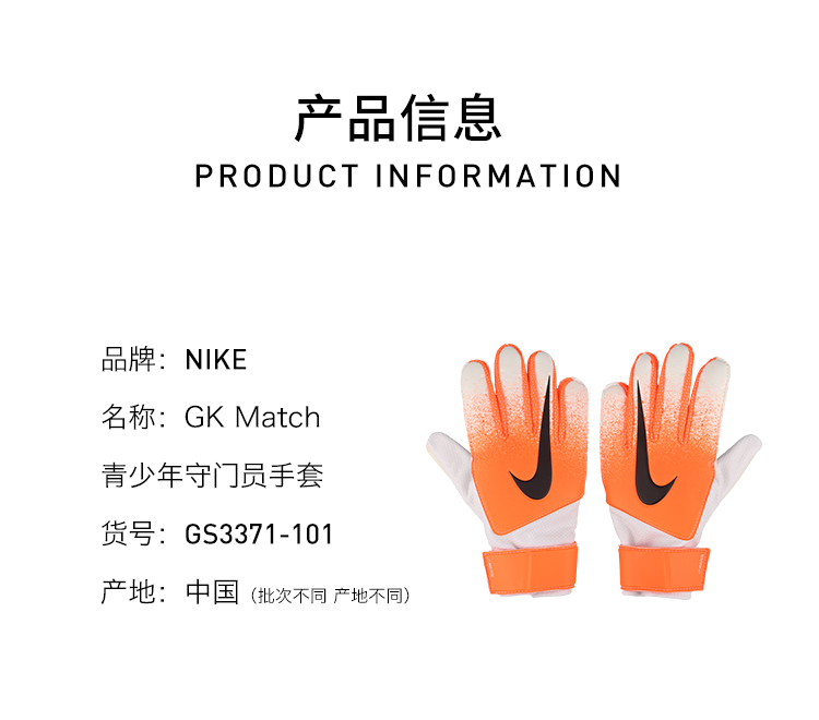 NIKE/耐克青少年比赛训练守门员手套儿童男GS3371-101