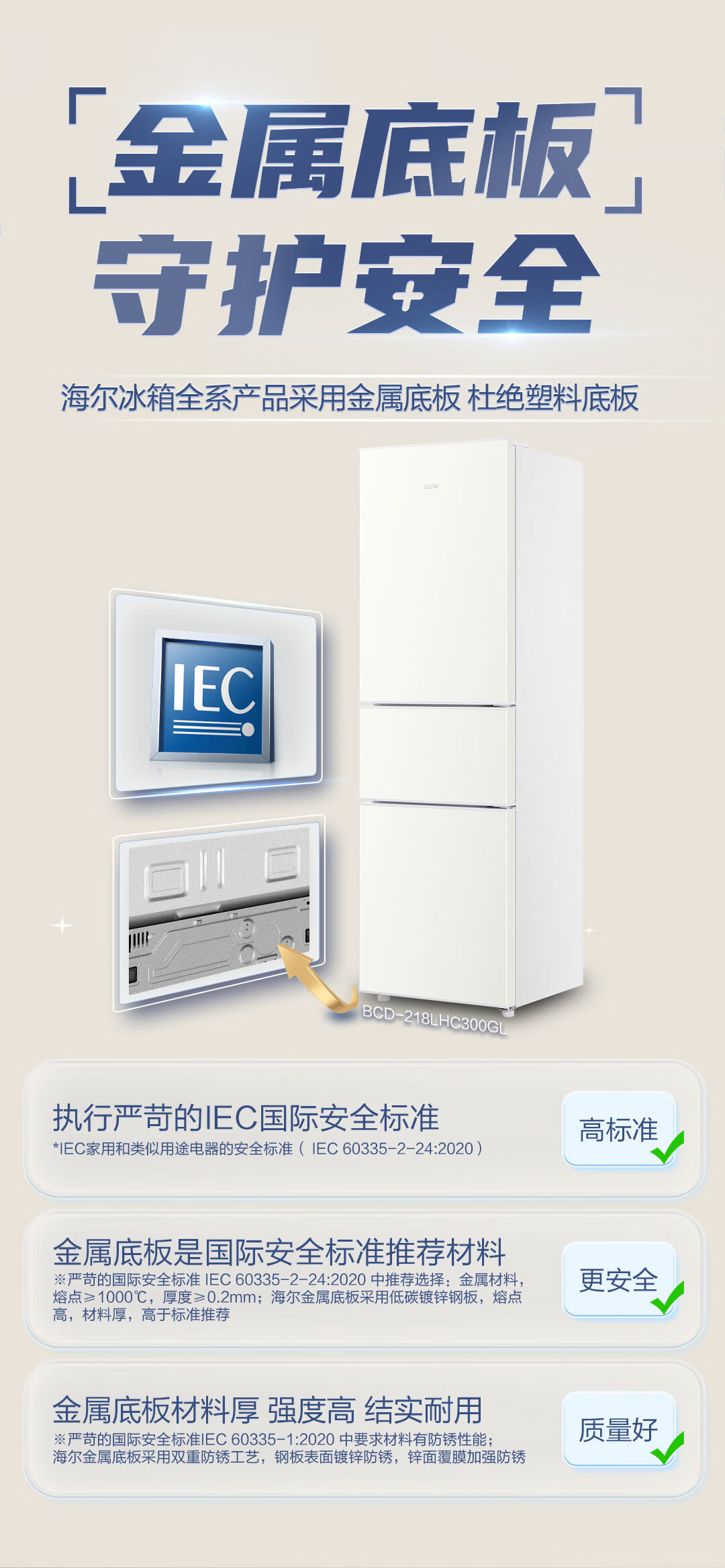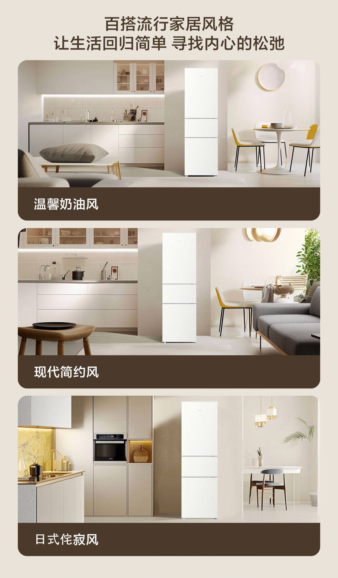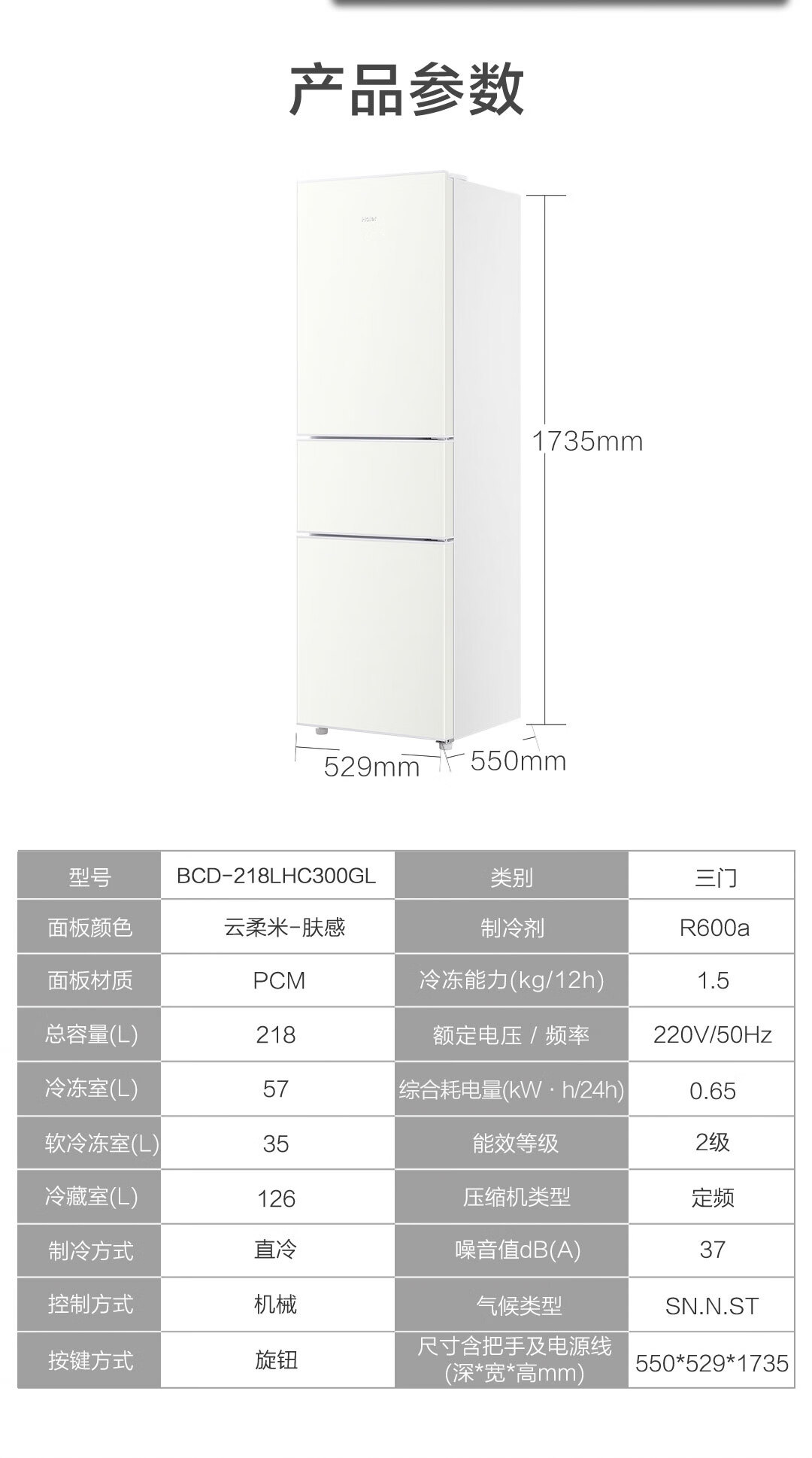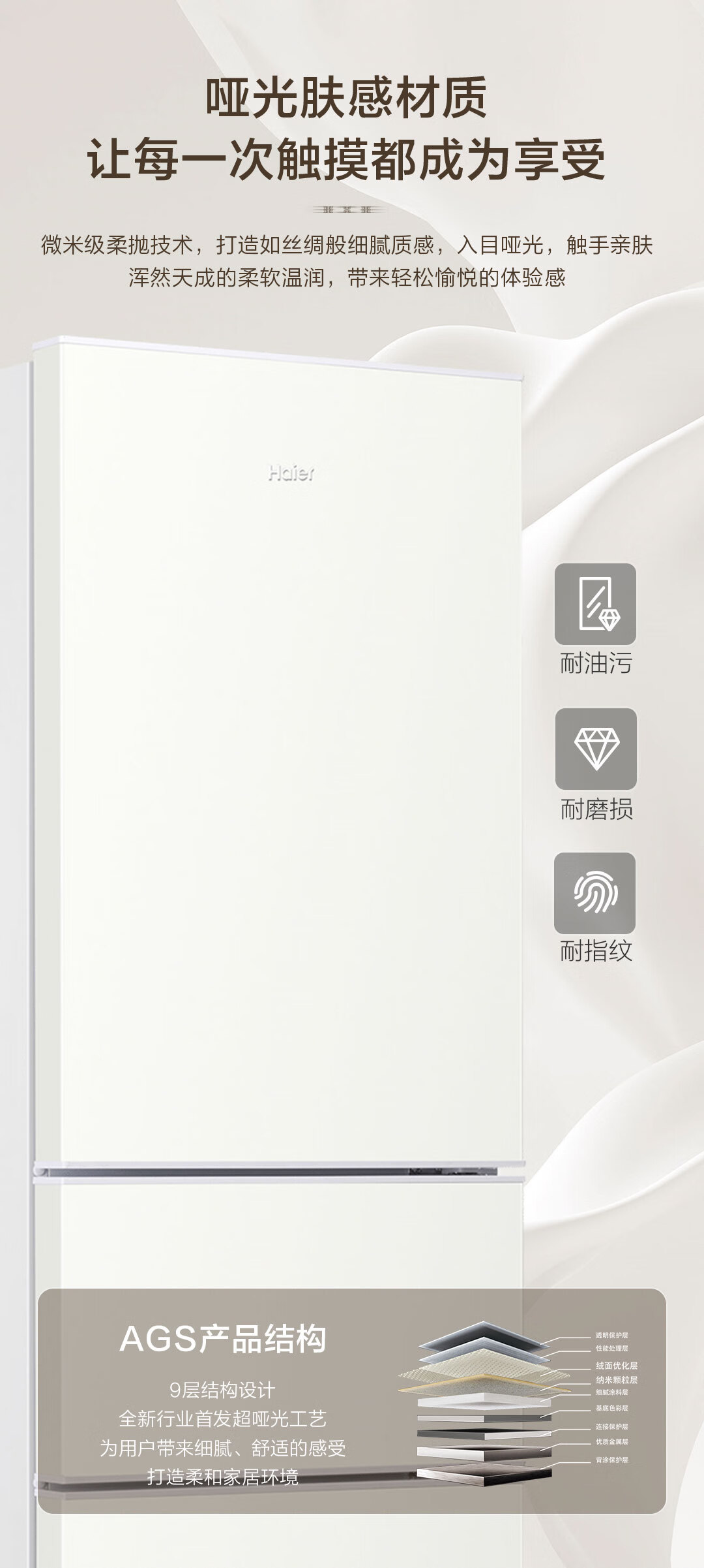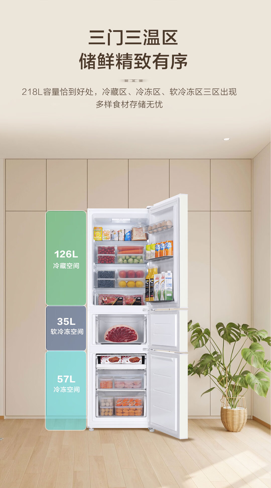 海尔(Haier)218升云柔米系列三门多门节能省电小户型迷你电冰箱家用白色宿舍租房中门软冷冻