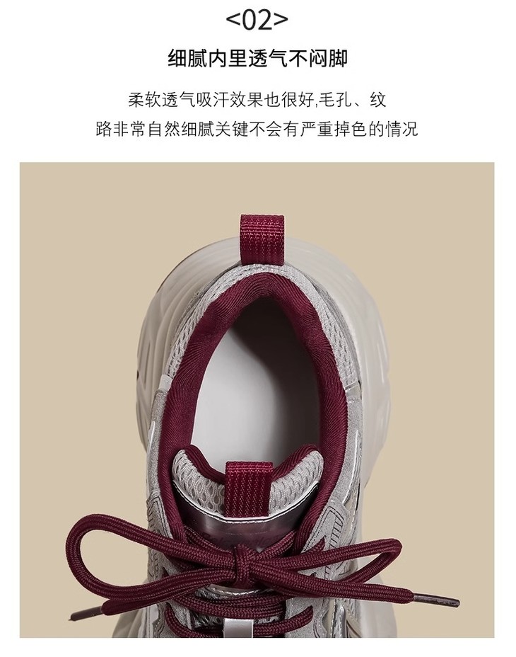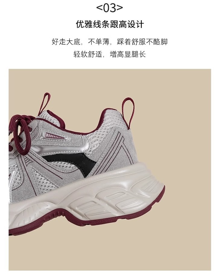今天给姐妹们带来了百搭运动鞋喔!! 简约线条➕秀气鞋型,上脚大方耐看 5cm跟高毫不夸张,上脚修饰腿型 🆕穿出韩系博主低调复古那味 小个子女孩可千万要收藏哈!! 整双尤其舒服轻便没有负担感,暴走也不累脚 可以搭配年底过年穿搭 都是CHAO百搭的噢!! 不知道穿什么的时候Shou选老爹鞋没错哒~ 灰白色 安可红 35-40标准码数(脚胖宽拍大一码)